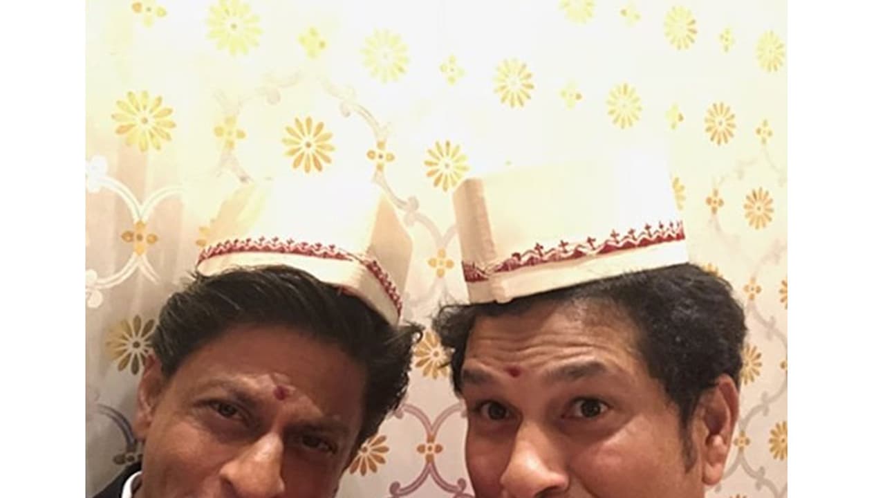 മഹാരാഷ്ട്രയില് വിവാഹവേളകളില് അണിയുന്ന മനോഹരമായ ഡിസൈനര് തൊപ്പികള് വച്ച് കുങ്കുമം തൊട്ട് ഷാരൂഖും സച്ചിനും. സച്ചിനും ഷാരൂഖ് ഖാനും ട്വിറ്ററിലൂടെ പങ്കുവച്ച ചിത്രമാണ് ആരാധകര്ക്കിടയില് വൈറലാകുന്നത്.