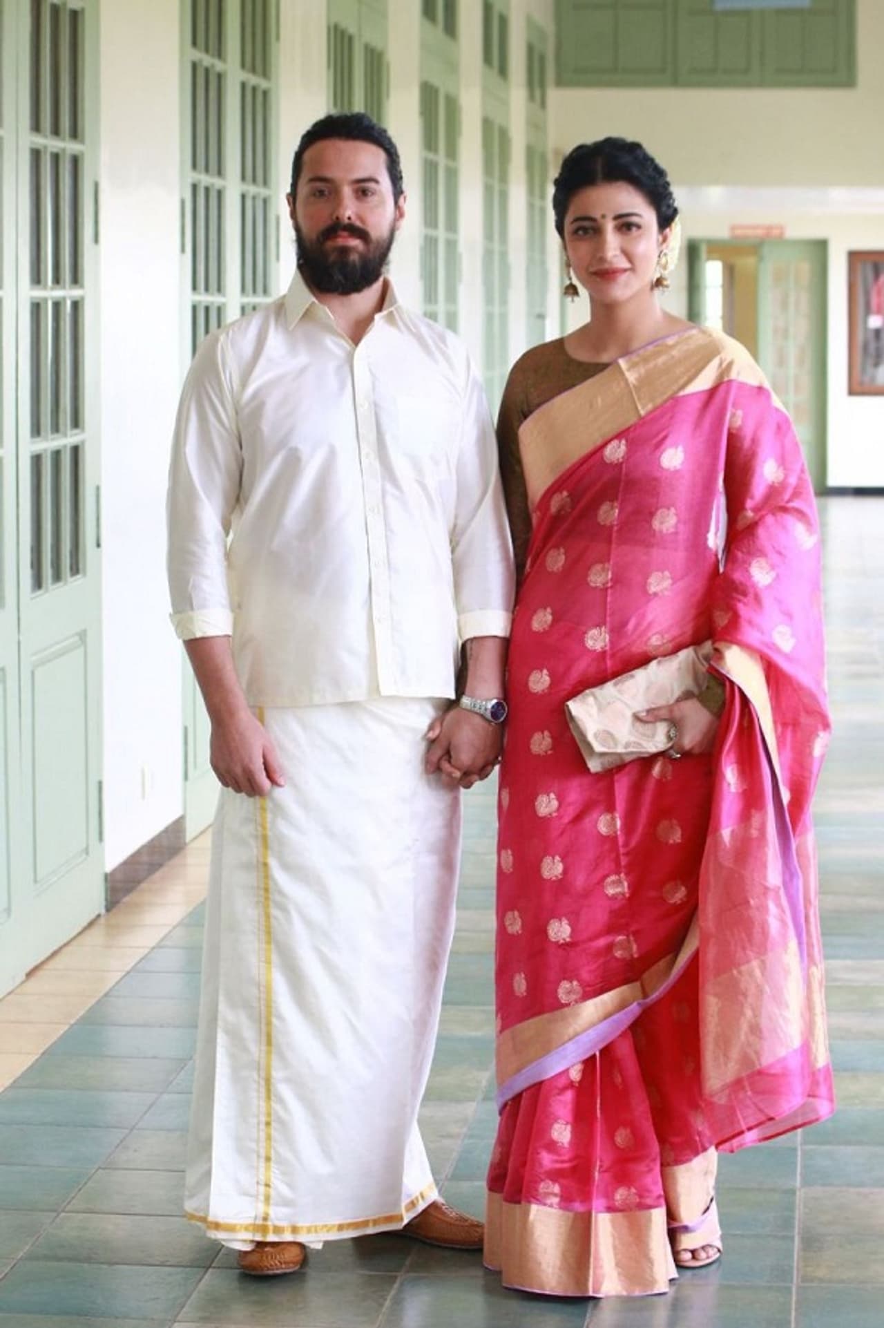 പാരമ്പര്യത്തനിമയുള്ള വേഷത്തില് ശ്രുതിഹാസനും കാമുകന് മിഖായേലും, മനോഹരമായ ചിത്രങ്ങള്