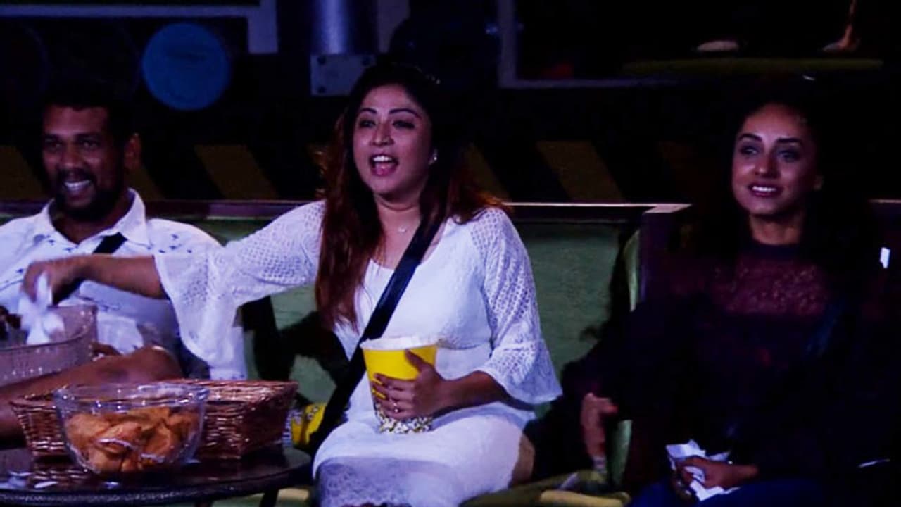 ഒരു സിനിമ കാണണമെന്ന ആഗ്രഹം പേളി മാണി ഉള്പ്പെടെയുള്ളവര് ഇക്കഴിഞ്ഞ വാരാന്ത്യ എപ്പിസോഡുകളില് മോഹന്ലാലിനോട് പറഞ്ഞിരുന്നു. ആഗ്രഹം സാധിച്ചുതരാമെന്ന് മോഹന്ലാല് വാക്ക് കൊടുക്കുകയും ചെയ്തിരുന്നു. അതനുസരിച്ച് ബിഗ് ബോസ് ഹൗസില് അവശേഷിക്കുന്ന ഏഴ് പേര്ക്കായി പ്രത്യേക സിനിമാപ്രദര്ശനം തിങ്കളാഴ്ച നടന്നു. മോഹന്ലാല് അഭിനയിച്ച ഒരു സൂപ്പര്ഹിറ്റ് സിനിമയെന്നതല്ലാതെ ഏത് സിനിമയെന്ന് പറയാതെയാണ് മത്സരാര്ഥികളെ ആക്ടിവിറ്റി ഏരിയയിലേക്ക് ക്ഷണിച്ചത്. സാധാരണ തീയേറ്ററില് ഒരു സിനിമ കാണാന് പോകുന്നതുപോലെ ഒരുങ്ങാന് നിര്ദേശിച്ച ബിഗ് ബോസ് ഇടയ്ക്ക് കഴിക്കാനുള്ള ഭക്ഷണപദാര്ഥങ്ങള് സ്റ്റോര് റൂമില് ഉണ്ടെന്നും അറിയിച്ചു. ആക്ടിവിറ്റി ഏരിയയിലേക്ക് പ്രവേശിച്ച മത്സരാര്ഥികളെ 1993ല് പുറത്തിറങ്ങിയ ഫാസിലിന്റെ മോഹന്ലാല് ചിത്രം മണിച്ചിത്രത്താഴിന്റെ പോസ്റ്ററുകളാണ് സ്വാഗതം ചെയ്തത്. മണിച്ചിത്ത്രാഴ് ആയിരുന്നു ബിഗ് ബോസ് ഹൗസില് ആദ്യമായി പ്രദര്ശിപ്പിച്ച സിനിമ. തീയേറ്ററുകളിലേതുപോലെ ഇടയ്ക്ക് 10 മിനിറ്റ് ഇടവേളയും അനുവദിച്ചിരുന്നു.