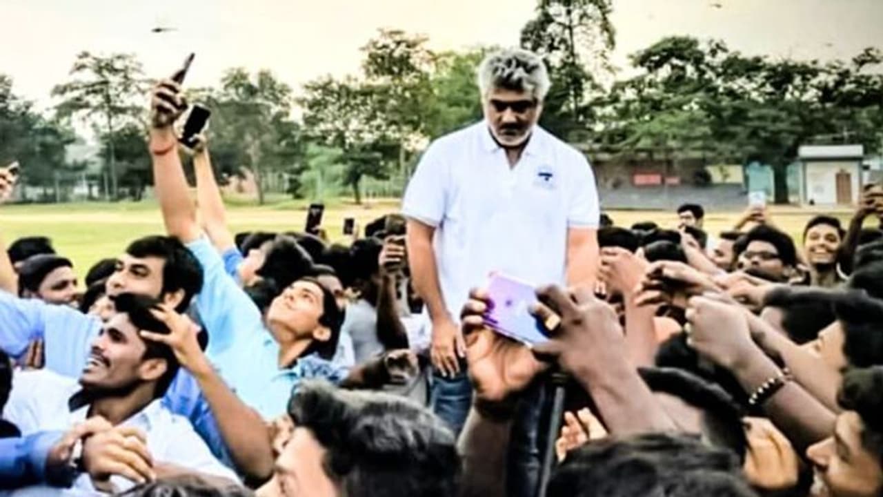 മദ്രാസ് ഇൻസിസ്റ്റ്യൂട്ട് ഓഫ് ടെക്നോളജി (എംഐടി) ക്യാമ്പസിലേക്കാണ് അജിത്ത് എത്തിയത്. യുഎവി ചലഞ്ച് മെഡിക്കല് എക്സ്പ്രസ്സില് പങ്കെടുത്ത ദക്ഷ ടീമിന്റെ ഹെലികോപ്റ്റര് ടെസ്റ്റ് പൈലറ്റായും യുഎവി സിസ്റ്റം അഡ്വൈസറായും കുടിയാണ് അജിത്. മത്സരത്തില് ടീം രണ്ടാം സ്ഥാനം നേടിയിരുന്നു. വിദ്യാര്ഥികളെ അഭിനന്ദിക്കാനാണ് അജിത് എത്തിയത്.