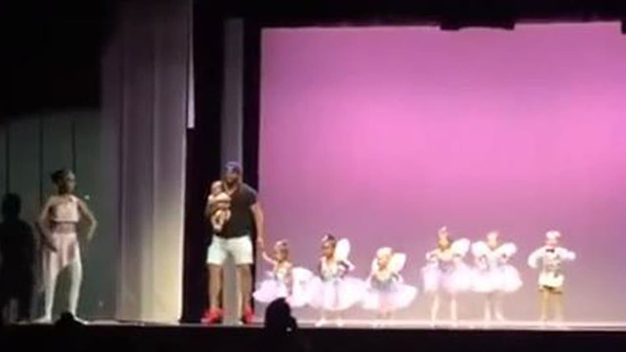 ബർമുഡ: ആനുവൽ ഡേയ്ക്ക് ഡാൻസ് കളിക്കാൻ കൂട്ടുകാർക്കൊപ്പം സ്റ്റേജിൽ കയറിയതാണ് ബെല്ല. എന്നാൽ ഡാൻസ് തുടങ്ങിക്കഴിഞ്ഞപ്പോൾ ബെല്ലയ്ക്ക് ആകെ മൊത്തം പരിഭ്രമം. കുറെപ്പേർ മുന്നിലിരിക്കുന്നു. ചിലർ ചിരിക്കുന്നു, മറ്റ് ചിലർ കയ്യടിക്കുന്നു. പിന്നെ ഒന്നും നോക്കിയില്ല. ഒറ്റക്കരച്ചിലായിരുന്നു. ഡാൻസ് വേണ്ട പോകാമെന്നായി ആവശ്യം. അപ്പോഴാണ് സ്റ്റേജിന്റെ എതിർവശത്ത് നിന്ന് അച്ഛൻ ഓടിവരുന്നത് കണ്ടത്. കയ്യിൽ അനിയൻ വാവയുമുണ്ട്. എന്നാൽ അച്ഛൻ അനുനയിപ്പിച്ചിട്ടും ബെല്ലാ കരച്ചിൽ നിർത്താൻ തയ്യാറായില്ല. അവസാനം അച്ഛനും കൂടെ ഡാൻസ് ചെയ്യേണ്ടി വന്നു. ബെർമുഡയിലെ ഹാമിൽട്ടൺ ഹോളിലായിരുന്നു മകളുടെ സഭാകമ്പം മാറ്റാൻ അച്ഛനും വേദിയിലെത്തിയത്.