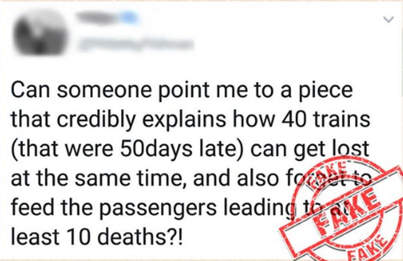 ശ്രമിക് ട്രെയിനില് യാത്ര ചെയ്ത 10 കുടിയേറ്റ തൊഴിലാളികള് ഭക്ഷണം ലഭിക്കാത്തത് മൂലം പട്ടിണി കിടന്ന് മരിക്കേണ്ടി വന്നിരുന്നുവെന്ന് മുന്പ് പ്രചരിച്ചിരുന്നു. സര്ക്കാര് അവര്ക്ക് ഭക്ഷണം നല്കിയില്ലെന്നും സാമൂഹ്യ മാധ്യമങ്ങളില് പ്രചരിച്ചു. ഈ പ്രചാരണത്തിനും മറുപടിയുമായി വിഭാഗം രംഗത്തെത്തിയിരുന്നു.