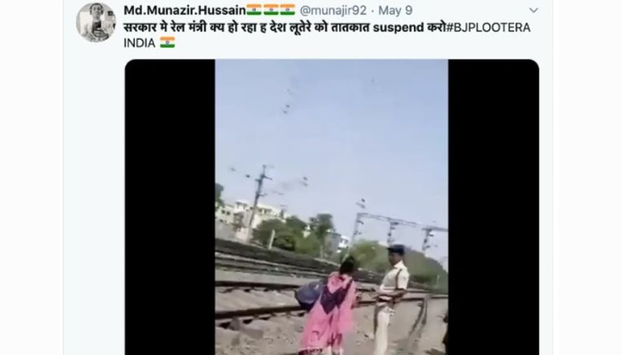 റെയില്വേ ട്രാക്കിലൂടെ നടന്നുവരുന്ന ഒരു സ്ത്രീയില് നിന്ന് ഉദ്യോഗസ്ഥന് പണം വാങ്ങിക്കുന്നതാണ് ദൃശ്യത്തില്. 'എന്താണ് ഈ രാജ്യത്ത് നടക്കുന്നത്, ഇയാളെ റെയില്വേ മന്ത്രി സസ്പെന്ഡ് ചെയ്യണം' എന്നാവശ്യപ്പെട്ടായിരുന്നു ഒരു പോസ്റ്റ്. നാട്ടിലേക്ക് മടങ്ങിപ്പോകുന്ന തൊഴിലാളികളെ റെയില്വെ പൊലീസ് ചോദ്യം ചെയ്യുകയും ഭീഷണിപ്പെടുത്തുകയും ചെയ്യുന്നതായും പോസ്റ്റുകളിലും ട്വീറ്റുകളിലും പറയുന്നു.