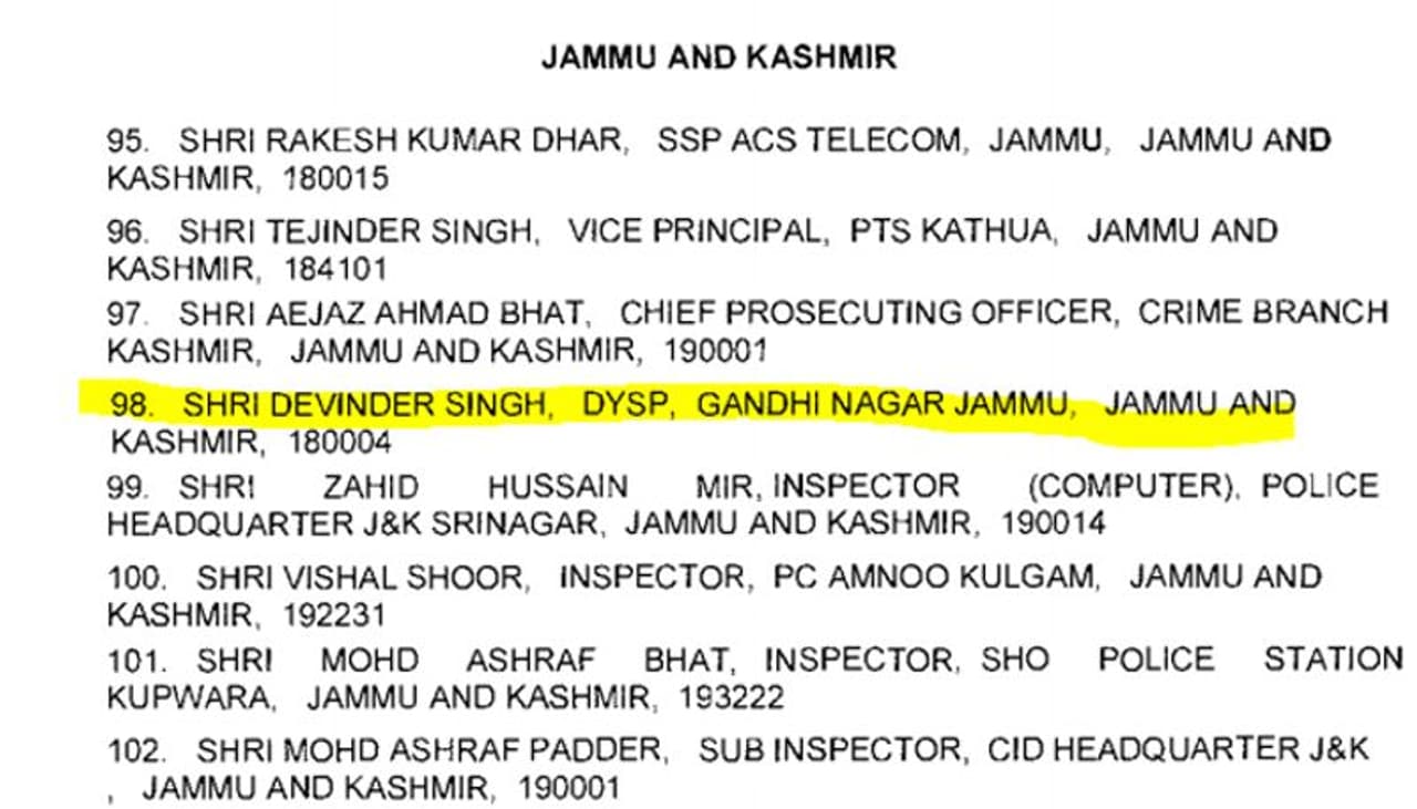 ശ്രീനഗര്: ജമ്മുകശ്മീരിൽ ഭീകരർക്കൊപ്പം കസ്റ്റഡിയിലെടുത്ത മുതിര്ന്ന പൊലീസ് ഉദ്യോഗസ്ഥന് ദേവീന്ദർ സിംഗിനെ സത്യത്തില് രാഷ്ട്രപതി അവാര്ഡ് കിട്ടിയിട്ടുണ്ടോ? കഴിഞ്ഞ വർഷം ഓഗസ്റ്റ് 15ന് രാഷ്ട്രപതിയില് നിന്ന് ധീരതയ്ക്കുള്ള മെഡല് ലഭിച്ചിട്ടുണ്ടെന്നായിരുന്നു പ്രചാരണങ്ങള്.