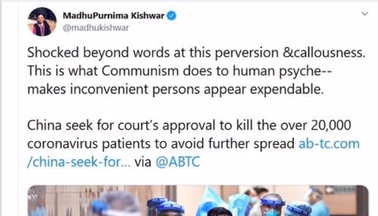കൊറോണ വൈറസ് വ്യാപനം തടയാന് ചൈന 20,000ത്തിലധികം രോഗികളെ കൊല്ലാന് കോടതിയുടെ അനുമതി തേടി എന്നാണ് വ്യാജ പ്രചാരണം
