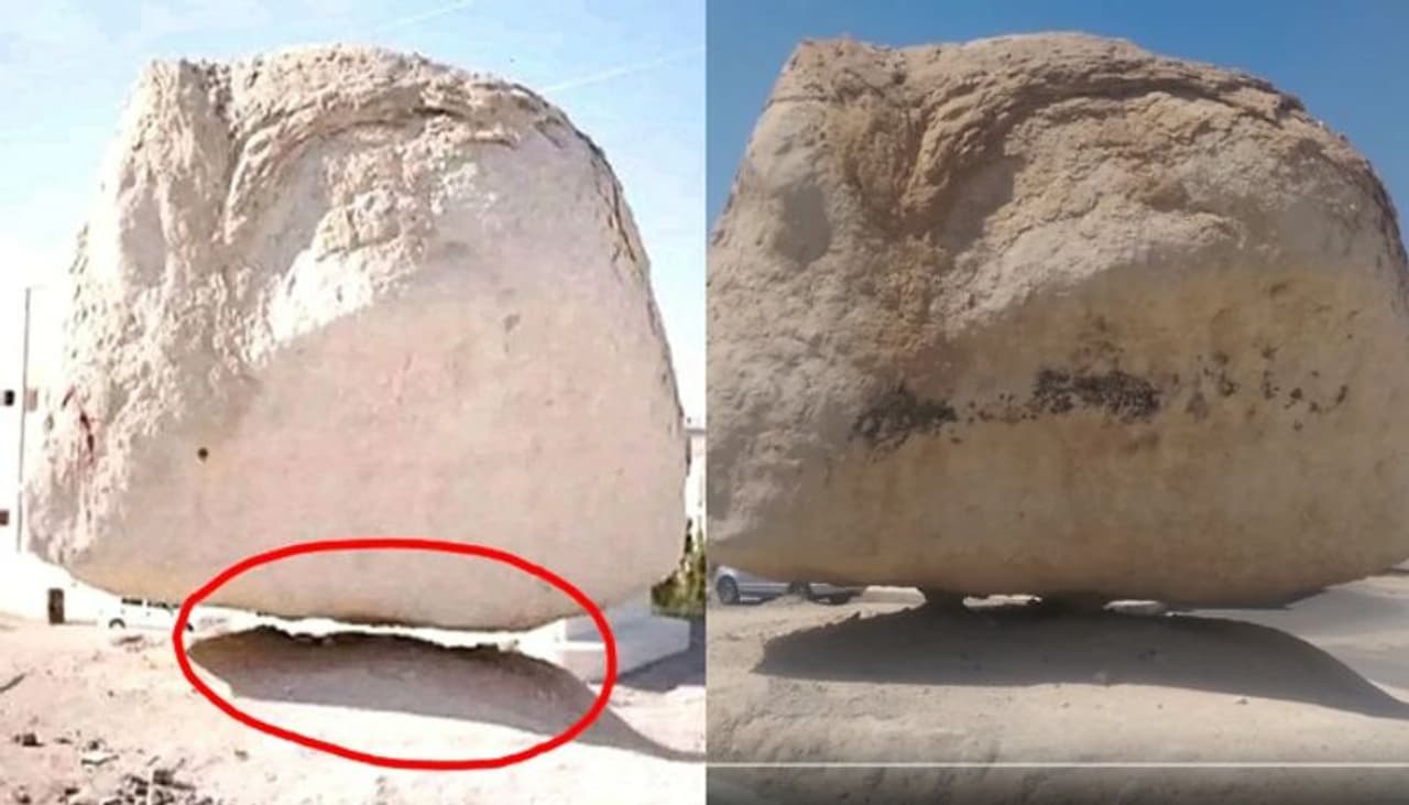 ടണ്കണക്കിന് ഭാരമുള്ള കൂറ്റന് പാറയാണ് ആയിരക്കണക്കിന് വര്ഷങ്ങളായി വായുവില് നില്ക്കുന്നത് എന്നാണ് അവകാശവാദം
