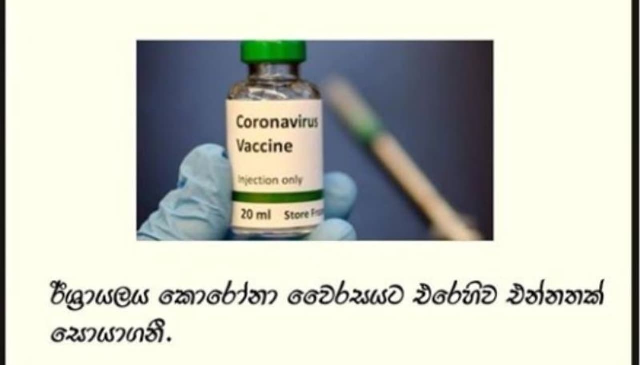 കൊവിഡ് 19ന് വാക്സിന് കണ്ടെത്തിയതായി സാമൂഹ്യമാധ്യമങ്ങളില് പ്രചാരണം ശക്തമാണ്. ഫേസ്ബുക്കിലാണ് ഏറിയ പ്രചാരണങ്ങളും പ്രത്യക്ഷപ്പെട്ടത്. ഇന്ത്യയും ശ്രീലങ്കയും ഉള്പ്പടെയുള്ള രാജ്യങ്ങളില് ഈ പ്രചാരണം സജീവമായി നടക്കുന്നുണ്ട്. വിശ്വാസ്യത കൂട്ടാന് ഒരു ചിത്രവും നല്കിയിട്ടുണ്ട്. ചിത്രത്തില് നല്കിയിരിക്കുന്ന മരുന്ന് കുപ്പിയില് കൊറോണ വാക്സിന് എന്നെഴുതിയിട്ടുണ്ട്. ചിത്രത്തിനൊപ്പം നല്കിയിരിക്കുന്ന സിംഹള ഭാഷയിലുള്ള കുറിപ്പിലാണ് ഇത് കണ്ടെത്തിയത് ഇസ്രയേലാണ് എന്ന് രേഖപ്പെടുത്തിയിരിക്കുന്നത്.