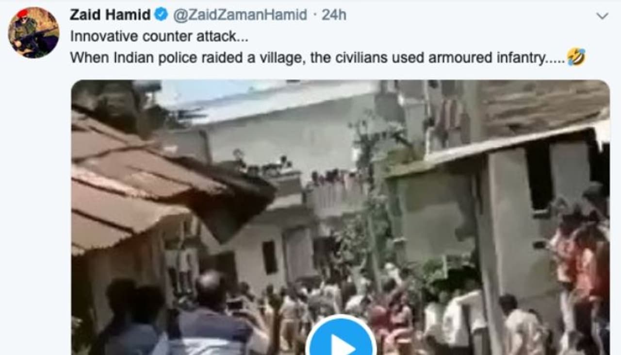 പാക് രാഷ്ട്രീയ നിരീക്ഷകനായ സയിദ് ഹമീദ് ഒരു കുറിപ്പോടെയാണ് വീഡിയോ ട്വീറ്റ് ചെയ്തത്. 'ക്രിയാത്മകമായ പ്രത്യാക്രമണം. ഇന്ത്യയില് ഒരു ഗ്രാമം പൊലീസുകാര് റെയ്ഡ് ചെയ്യാനെത്തിയപ്പോള് ജനങ്ങള് രക്ഷാകവചമായി പശുക്കളെ ഉപയോഗിച്ചു' എന്നാണ് സയിദ് വീഡിയോയ്ക്കൊപ്പം കുറിച്ചത്. സയിദ് ഹമീദിന്റെ ട്വീറ്റ് നിരവധി പേര് ഏറ്റെടുക്കുകയും റീ-ട്വീറ്റ് ചെയ്യുകയും ചെയ്തു.