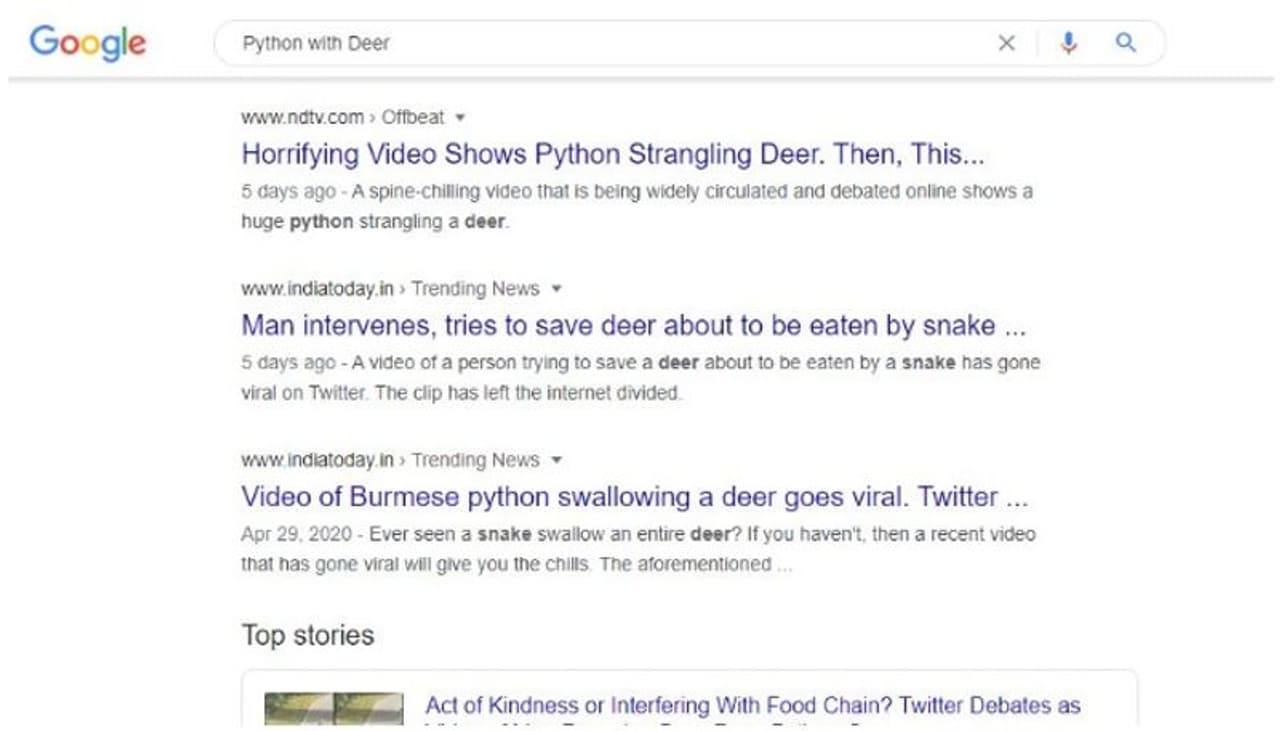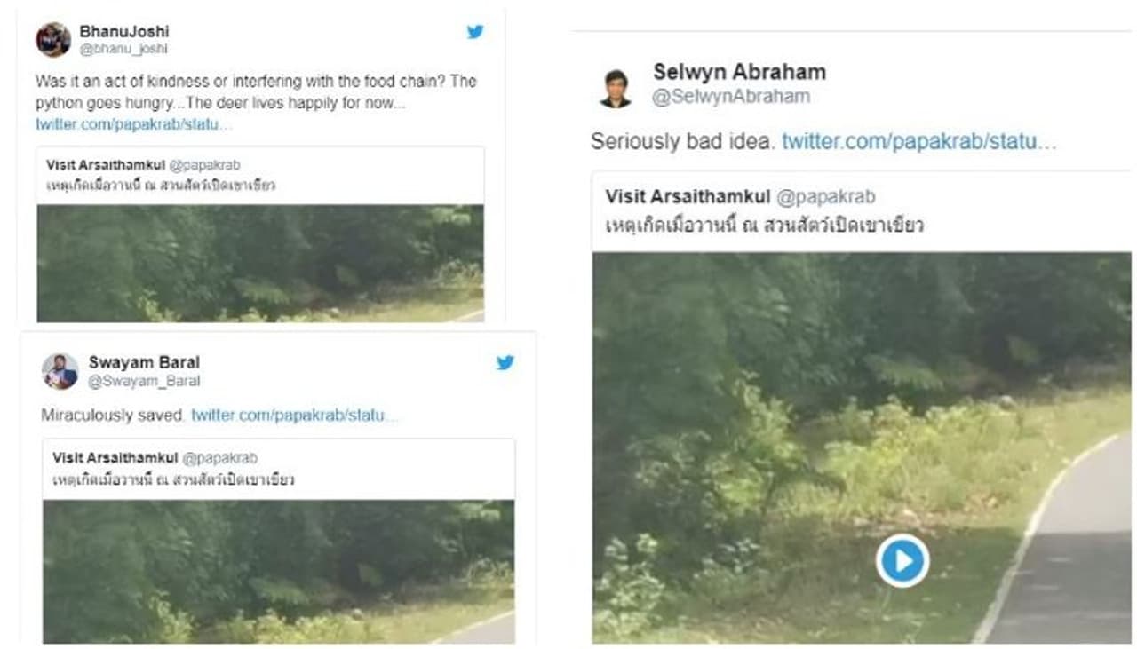 Man intervenes, tries to save deer about to be eaten by snake. Viral video has Twitter divided