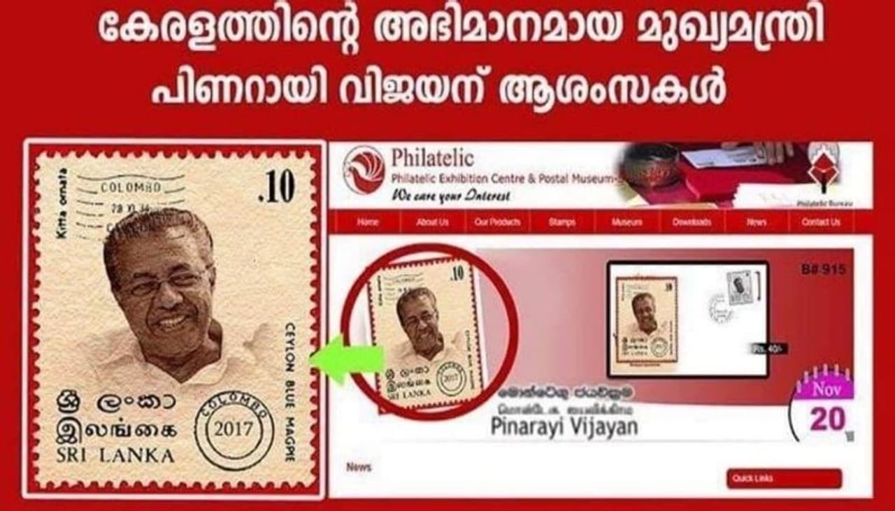 മുഖ്യമന്ത്രിയെ ആദരിച്ച് ശ്രീലങ്കന് സർക്കാർ സ്റ്റാംപ് പുറത്തിറക്കി എന്ന അവകാശവാദത്തോടെ സാമൂഹ്യമാധ്യമങ്ങളില് ഒരു ചിത്രം പ്രചരിക്കുകയാണ്