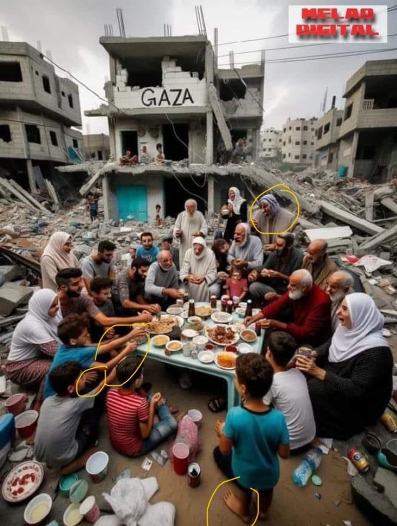 ഇസ്രയേല്-ഹമാസ് ഏറ്റുമുട്ടല് ഗാസയെ രക്തരൂക്ഷിതമാക്കിയിരിക്കുമ്പോള് നിരവധി വീഡിയോകളും ചിത്രങ്ങളുമാണ് സാമൂഹ്യമാധ്യമങ്ങളില് പ്രചരിക്കുന്നത്. ഇക്കൂട്ടത്തിലൊരു ചിത്രമാണ് തകര്ന്ന കെട്ടിടങ്ങള്ക്ക് മധ്യേ ഒരു തീന്മേശയ്ക്ക് ചുറ്റുമിരുന്ന് നിരവധിയാളുകള് ഭക്ഷണം കഴിക്കുന്നതിന്റെത്. ഗാസയില് നിന്നുള്ള ചിത്രം എന്ന കുറിപ്പോടെയാണ് ഈ ഫോട്ടോ സാമൂഹ്യമാധ്യമമായ എക്സില് (പഴയ ട്വിറ്റര്) പ്രചരിക്കുന്നത്. എന്നാല് ഈ ചിത്രം യാഥാര്ഥ്യമല്ല എന്നതാണ് വസ്തുത.