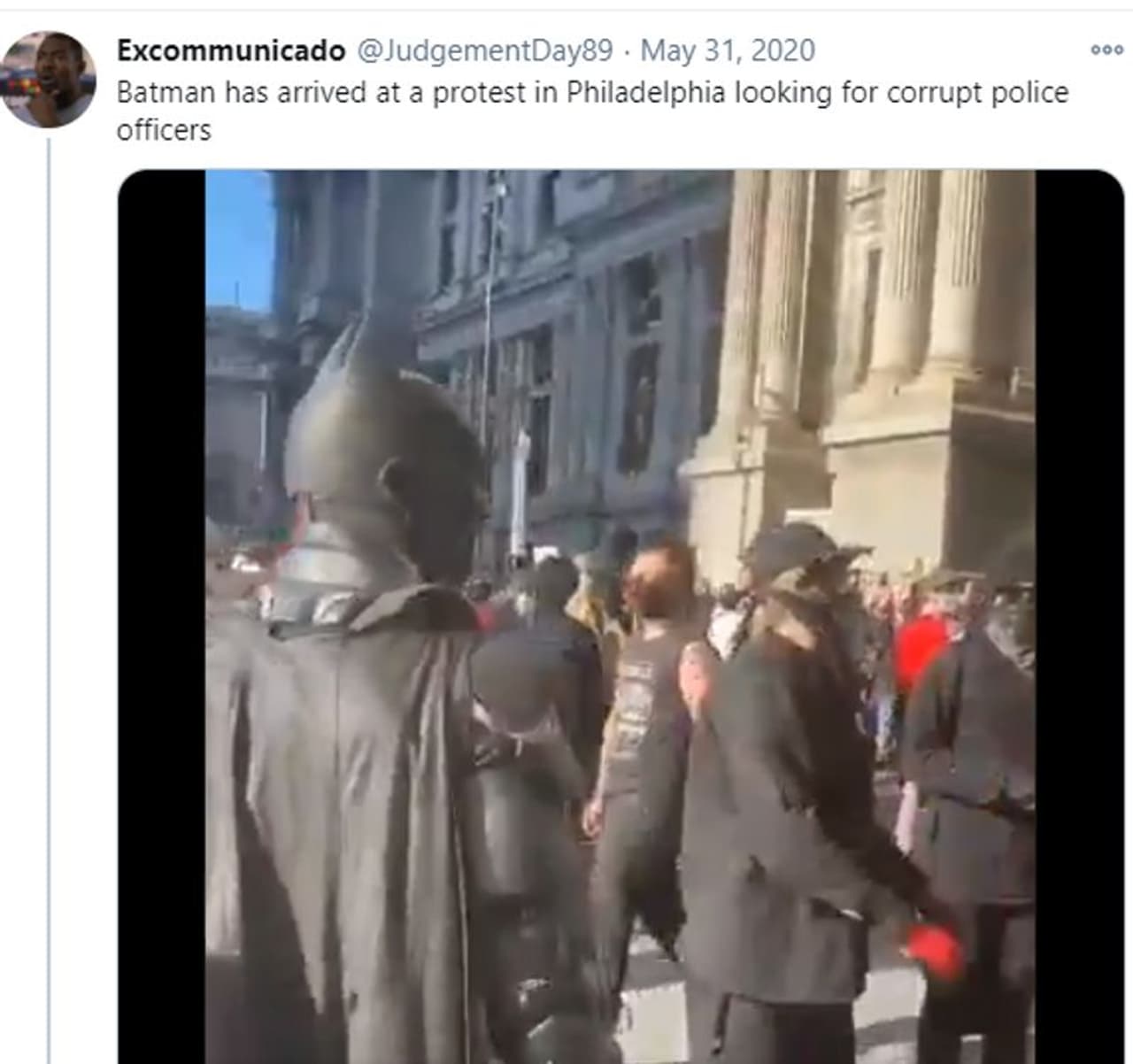 രക്ഷകവേഷം അണിഞ്ഞ് ഒരു ബാറ്റ്മാന് വേഷധാരി പ്രത്യക്ഷപ്പെട്ടോ ക്യാപിറ്റോള് ഹില്സിലെ പ്രതിഷേധക്കാര്ക്കിടയില്.