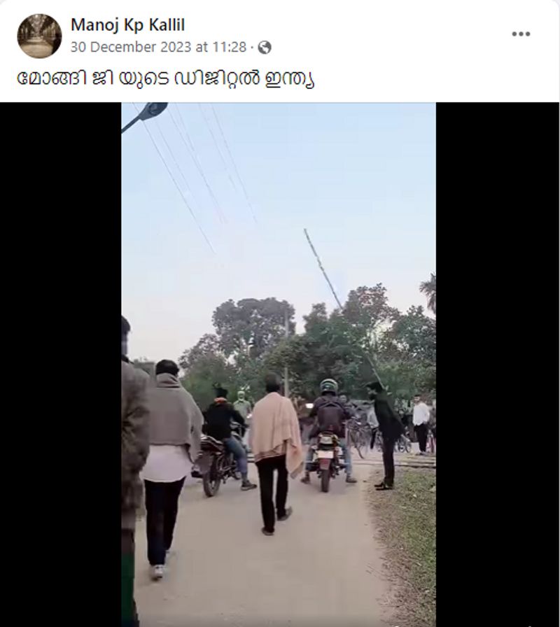 ശരീരത്തില് നീളമുള്ള മുള വച്ചുകെട്ടി ലെവല്ക്രോസില് ഗതാഗതം നിയന്ത്രിക്കുന്ന ഒരാളുടെ വീഡിയോ സാമൂഹ്യമാധ്യമങ്ങളില് വൈറലാണ്. ട്രെയിന് വരാറാകുമ്പോള് ഇയാള് തലതാഴ്ത്തി കുനിയുന്നതും ട്രെയിന് കടന്നുപോയിക്കഴിഞ്ഞാല് നിവര്ന്ന് നില്ക്കുന്നതുമായ രീതിയിലാണ് വീഡിയോ. ഇയാള് കുനിയുകയും നിവരുകയും ചെയ്യുന്നതിന് അനുസരിച്ച് മുളകൊണ്ടുള്ള റെയില്വേ ഗേറ്റ് പ്രവര്ത്തിക്കുന്നു. 'മോങ്ങി ജി യുടെ ഡിജിറ്റൽ ഇന്ത്യ' എന്ന തലക്കെട്ടില് 21 സെക്കന്ഡ് ദൈര്ഘ്യമുള്ള വീഡിയോ മനോജ് കെ പി കല്ലില് എന്ന യൂസര് ഫേസ്ബുക്കില് പങ്കുവെച്ചിരിക്കുന്നത് ചുവടെ കാണാം. ഇതിനകം ആയിരത്തിലേറെ ഷെയറുകളാണ് ഈ വീഡിയോയ്ക്ക് ലഭിച്ചത്. മോദിജിയുടെ ഇന്ത്യയിലാണ് ഈ വിചിത്ര ലെവല് ക്രോസ് സംവിധാനം എന്നാണ് വീഡിയോയുടെ കമന്റ് ബോക്സില് നിരവധിയാളുകളുടെ പരിഹാസം.