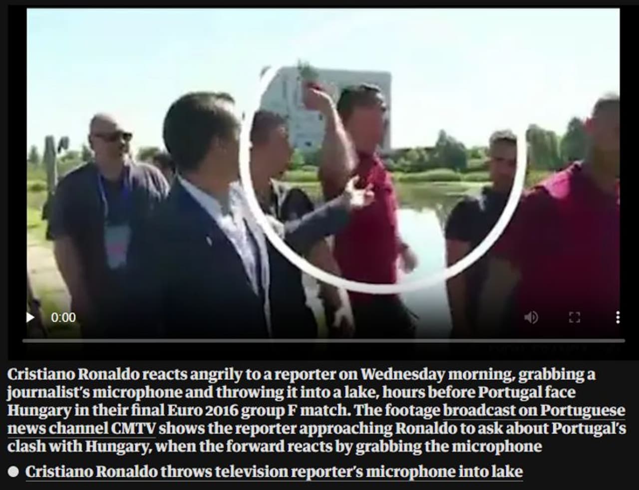 ലിയോണിലെ ഹോട്ടല് റൂമിന് പുറത്ത് ക്രിസ്റ്റ്യാനോ നടക്കാനിറങ്ങിയപ്പോഴാണ് മാധ്യമപ്രവര്ത്തകന് മൈക്കുമായി എത്തിയത്. യൂറോയില് ഹംഗറിക്ക് എതിരായ അവസാന ഗ്രൂപ്പ് മത്സരത്തിന് തൊട്ടു മുമ്പായിരുന്നു ഈ സംഭവം. മത്സരത്തെ കുറിച്ച് ചോദിച്ച മാധ്യമപ്രവര്ത്തകന്റെ മൈക്ക് സിആര്7 വലിച്ചെറിയുകയായിരുന്നു എന്നാണ് ദി ഗാര്ഡിയന്റെ റിപ്പോര്ട്ടില് പറയുന്നത്. ഇത് സംബന്ധിച്ച് ഗാര്ഡിയന് നല്കിയ രണ്ട് റിപ്പോര്ട്ടുകളുടെ സ്ക്രീന്ഷോട്ടുകള് ചുവടെ കാണാം.