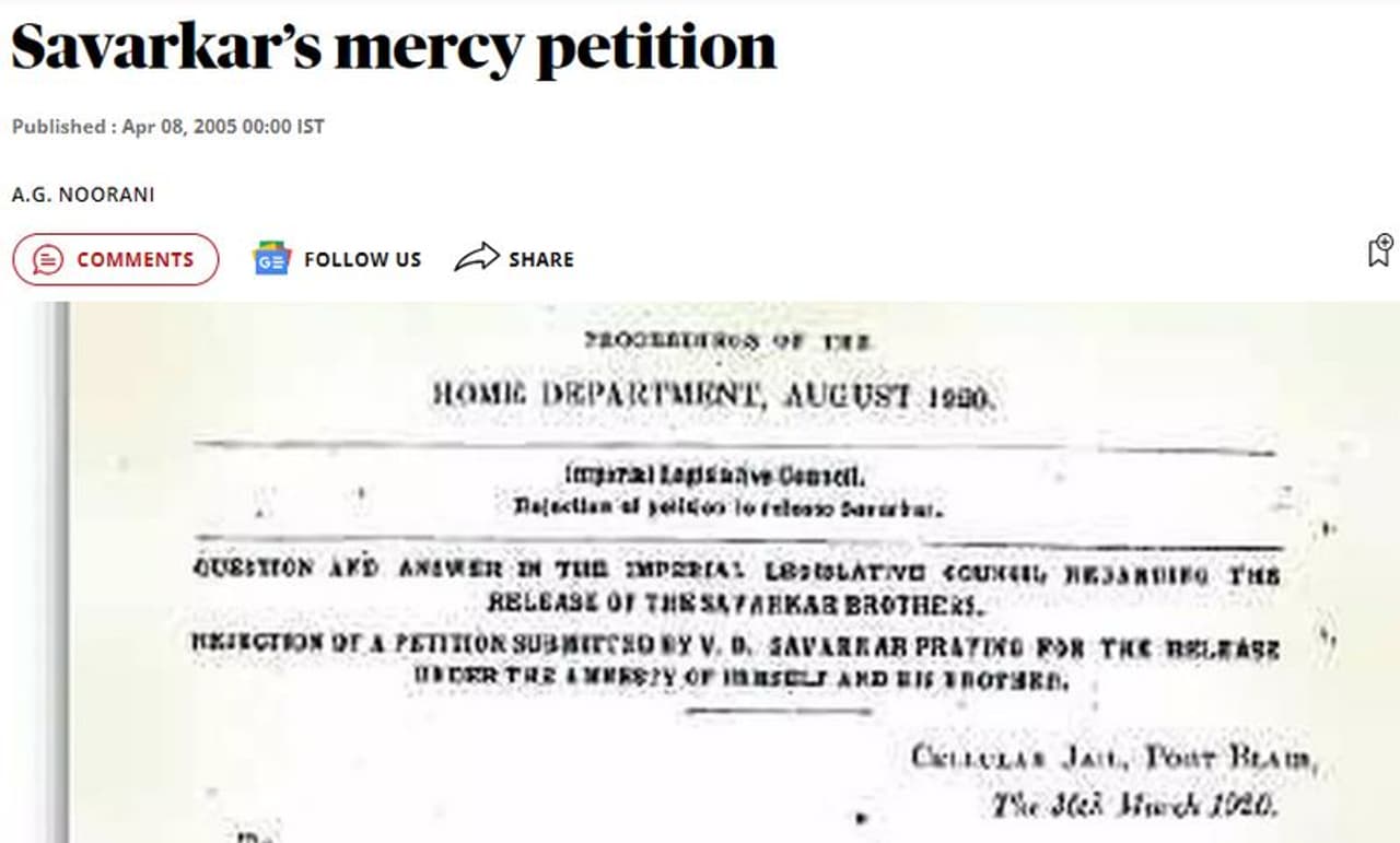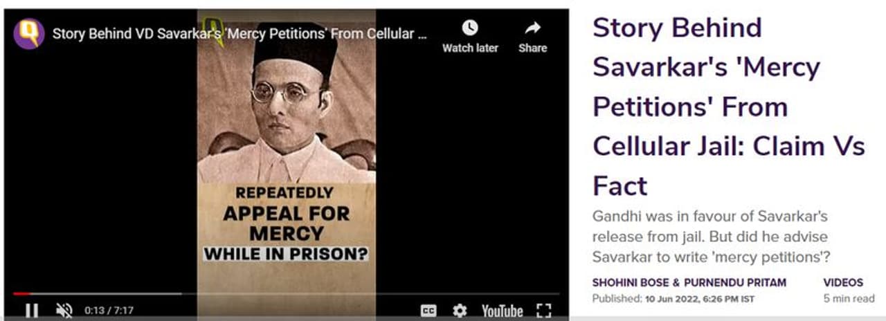 സവര്ക്കറുടെയും പിണറായി വിജയന്റെയും പേരുകളില് പ്രചരിക്കുന്ന കത്തുകള് സത്യമോ എന്നറിയാന് ഏഷ്യാനെറ്റ് ന്യൂസ് ഓണ്ലൈന് ഫാക്ട് ചെക്ക് ടീം വസ്തുതാ പരിശോധന നടത്തി. സവര്ക്കറുടെ കത്ത് സംബന്ധിച്ചുള്ള വിശദാംശങ്ങള് അറിയാന് കീവേഡ് സെര്ച്ച് നടത്തി. ഇതില് ലഭിച്ച ഫലങ്ങള് സവര്ക്കറുടെ കത്തുകളെ കുറിച്ചുള്ള വിശദാംശങ്ങള് വ്യക്തമാക്കുന്നുണ്ട്. ജയില് നിന്നുള്ള സവര്ക്കറുടെ മാപ്പപേക്ഷകളെ കുറിച്ച് ദേശീയ മാധ്യമമായ ഫ്രണ്ട്ലൈന് പ്രസിദ്ധീകരിച്ച ലേഖനവും ദി ക്വിന്റ് പബ്ലിഷ് ചെയ്ത ഫാക്ട് ചെക്ക് സ്റ്റോറിയും ലിങ്കുകളില് വായിക്കാനാവുന്നതാണ്. സവര്ക്കറുടെ കത്തിന്റെ കോപ്പി ഫ്രണ്ട്ലൈന് ലേഖനത്തില് ചേര്ത്തിട്ടുണ്ട്. ഇരു മാധ്യമ റിപ്പോര്ട്ടുകളുടെയും സ്ക്രീന്ഷോട്ടുകള് ചുവടെ.