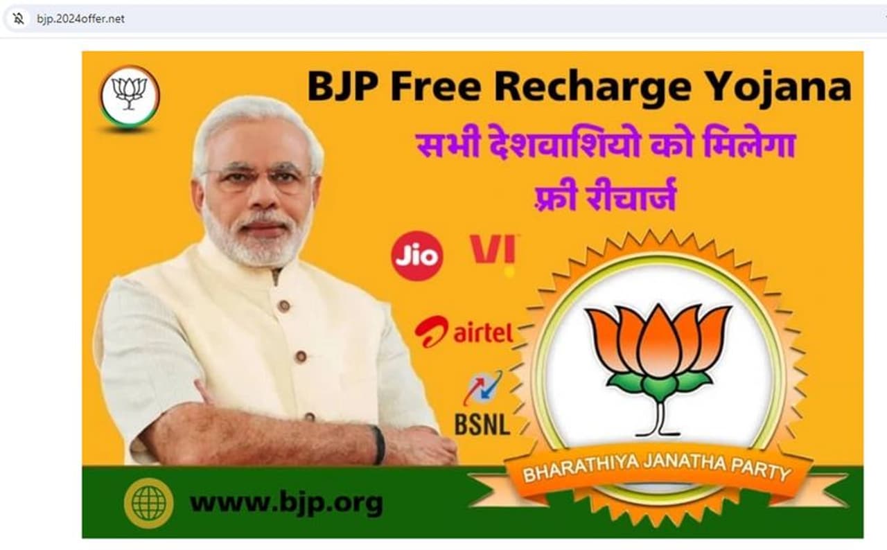 ബിജെപി ഫ്രീ റീച്ചാര്ജ് യോജന എന്ന തലക്കെട്ടില് ഒരു വെബ്സൈറ്റിന്റെ ലിങ്ക് സഹിതമാണ് വാട്സ്ആപ്പില് സന്ദേശം വൈറലായിരിക്കുന്നത്
