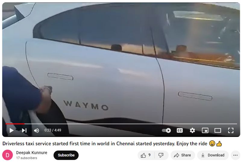 ഡ്രൈവറില്ലാ ടാക്സി ലോകത്താദ്യമായി ചെന്നൈയില് സര്വീസ് തുടങ്ങി എന്നാണ് വീഡിയോയുടെ തലക്കെട്ടില് പറയുന്നത്