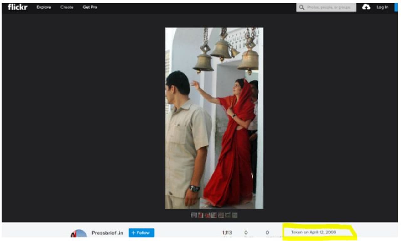 പ്രിയങ്കയുടെ ചിത്രം പഴയതാണ് എന്ന് ഇതോടെ വ്യക്തമായെങ്കിലും ചിത്രത്തിന്റെ വിശദമായ വിവരം തിരക്കിയപ്പോള് സ്റ്റോക് ഇമേജ് പ്ലാറ്റ്ഫോമായ ഫ്ലിക്കറില് ഈ ഫോട്ടോ 2009 ഏപ്രില് 9ന് അപ്ലോഡ് ചെയ്തിട്ടുള്ളതായി കണ്ടെത്താനായി. ഇതോടെ ഇപ്പോള് അഞ്ച് നിയമസഭകളിലേക്ക് 2023ന്റെ അവസാനം നടക്കുന്ന തെരഞ്ഞെടുപ്പിന്റെ പശ്ചാത്തലത്തില് പ്രചരിക്കുന്ന ചിത്രം പഴയതും 2009ലേതാണ് എന്നും ഉറപ്പായി.