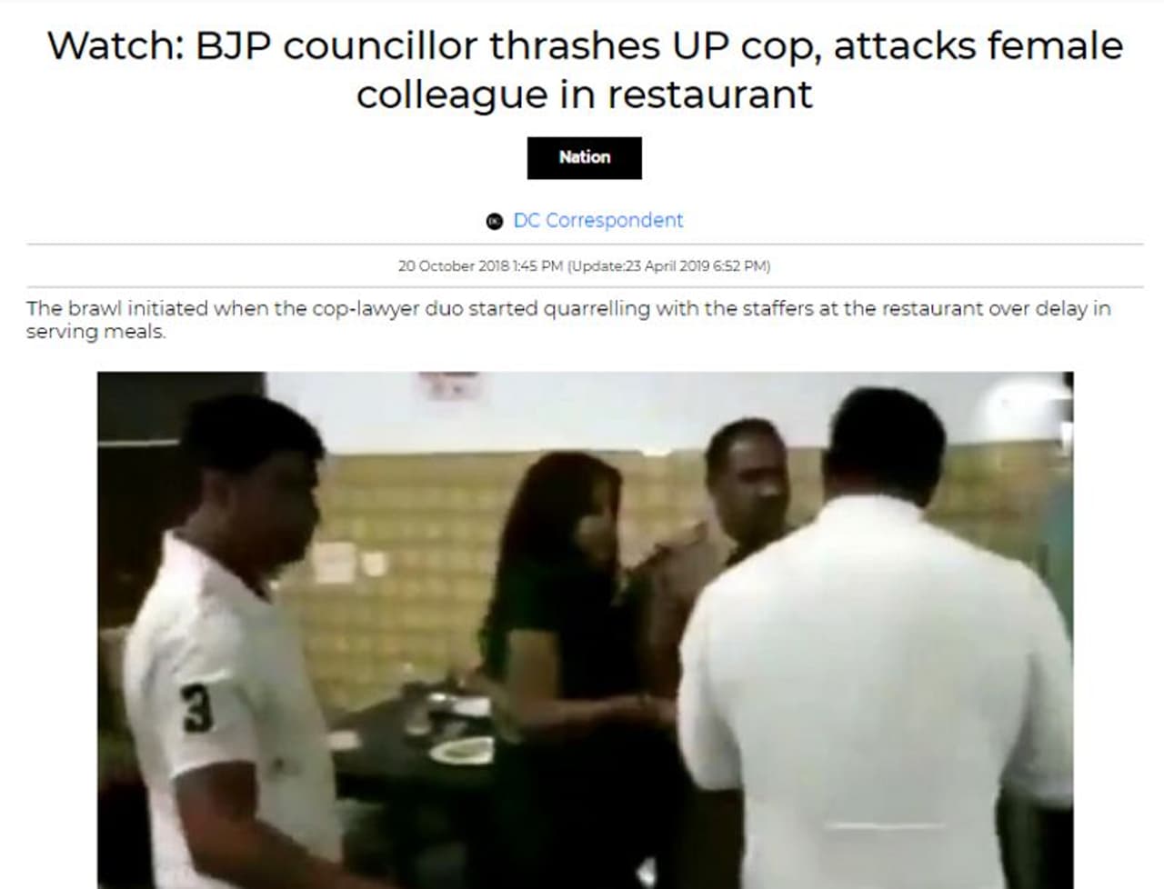 വീഡിയോ വ്യാപകമായി ഷെയര് ചെയ്യപ്പെടുന്ന സാഹചര്യത്തില് വസ്തുത എന്താണ് എന്ന് നോക്കാം. വസ്തുത മനസിലാക്കാന് വീഡിയോയുടെ ഫ്രെയിമുകള് റിവേഴ്സ് ഇമേജ് സെര്ച്ചിന് വിധേയമാക്കുകയാണ് ചെയ്തത്. ഇതില് ഇംഗ്ലീഷ് മാധ്യമമായ ഡെക്കാന് ക്രോണിക്കിള് 2018 ഒക്ടോബര് 20ന് പ്രസിദ്ധീകരിച്ച ഒരു വാര്ത്ത ലഭിച്ചു. ബിജെപി കൗണ്സിലര് റസ്റ്റോറന്റില് വച്ച് ഉത്തര്പ്രദേശ് പൊലീസുകാരനെ മര്ദിച്ചു എന്ന തലക്കെട്ടിലാണ് വാര്ത്ത. മീറ്ററ്റിലെ 40-ാം വാര്ഡ് കൗണ്സിലറായ മുനീഷ് കുമാറാണ് എസ്ഐയെ മര്ദിച്ചത് എന്ന് വാര്ത്തയില് പറയുന്നു. സംഭവം നടന്ന റസ്റ്റോറന്റിന്റെ ഉടമ കൂടിയാണ് മുനീഷ് കുമാര്. ഭക്ഷണം നല്കാന് വൈകിയെന്ന പരാതിയെ തുടര്ന്നായിരുന്നു മര്ദനം.
