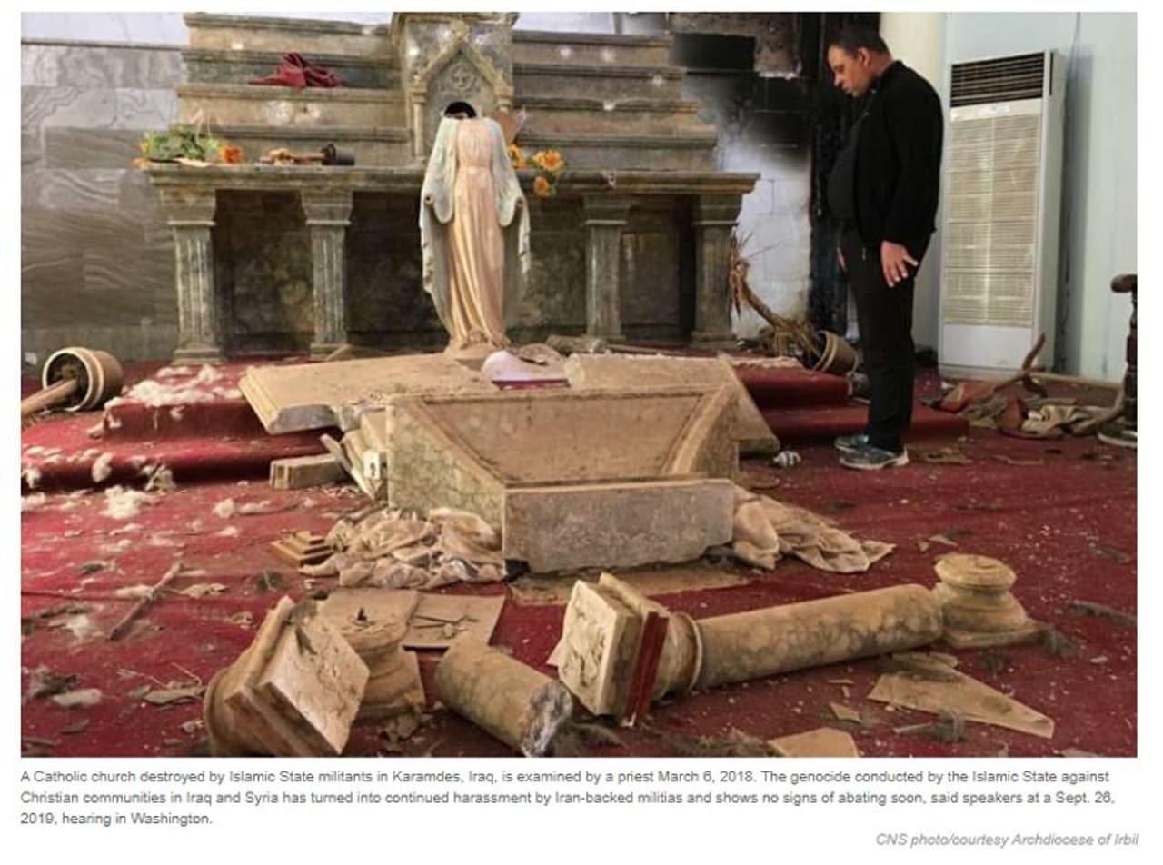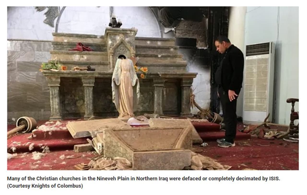 കന്യാമറിയത്തിന്റെ രൂപത്തിന്റെ തല തകര്ക്കപ്പെട്ട രീതിയില് പ്രചരിക്കുന്ന ചിത്രം മണിപ്പൂരിലേത് തന്നെയോ എന്ന് അറിയാന് ഫോട്ടോ റിവേഴ്സ് ഇമേജ് സെര്ച്ചിന് വിധേയമാക്കുകയാണ് ചെയ്തത്. ഈ പരിശോധനയില് ചിത്രത്തിന്റെ പൂര്ണരൂപത്തിലുള്ള ഫോട്ടോ ലഭിച്ചു. 2019 സെപ്റ്റംബര് 30ന് 'Islamic State violence against Christians in Iraq, Syria focus of hearing' എന്ന തലക്കെട്ടില് www.catholicregister.org എന്ന ഓണ്ലൈന് പ്രസിദ്ധീകരിച്ച റിപ്പോര്ട്ടിലാണ് ഈ ഫോട്ടോയുള്ളത്. ഈ റിപ്പോര്ട്ടില് പറയുന്നത് ഇറാഖില് ഐഎസ് തകര്ത്ത കത്തോലിക്ക ദേവാലയം പുരോഹിതന് പരിശോധിക്കുന്ന ഫോട്ടോയാണിത് എന്നാണ്. 2018 സെപ്റ്റംബര് 6ന് പകര്ത്തിയ ഫോട്ടോയാണിത് എന്നും ചിത്രത്തിന്റെ അടിക്കുറിപ്പില് വിശദീകരിക്കുന്നു.