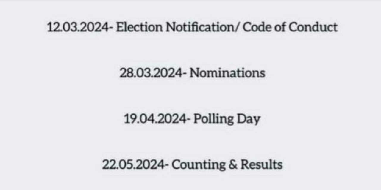 2024 മാര്ച്ച് 12-ാം തിയതി തെരഞ്ഞെടുപ്പ് വിജ്ഞാപനം പുറത്തിറങ്ങും എന്നാണ് പ്രചരിക്കുന്ന നോട്ടീസില് പറയുന്നത്