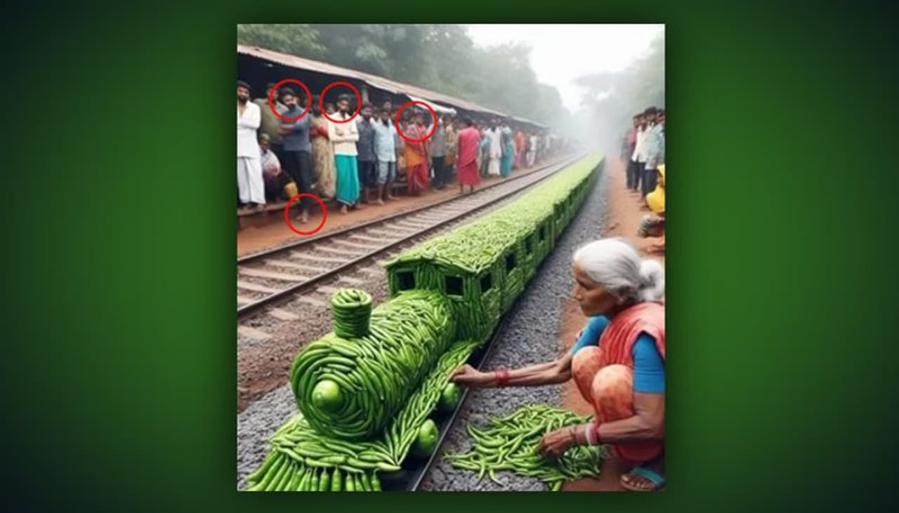 മാത്രമല്ല, എഐ ചിത്രങ്ങളില് പലപ്പോഴും അപൂര്ണതകള് കാണാറുണ്ട്. ഈ ചിത്രം പരിശോധിച്ചാല് റെയില്വേ ട്രാക്കിന് സമീപം കാഴ്ചക്കാരായി നില്ക്കുന്നവരില് പലരുടെയും മുഖം വ്യക്തമല്ലെന്ന് കാണാം. മുഖത്തിനുള്ള ഈ രൂപവ്യത്യാസവും ചിത്രം എഐ നിര്മിതമാണെന്ന് തെളിയിക്കുന്നു.