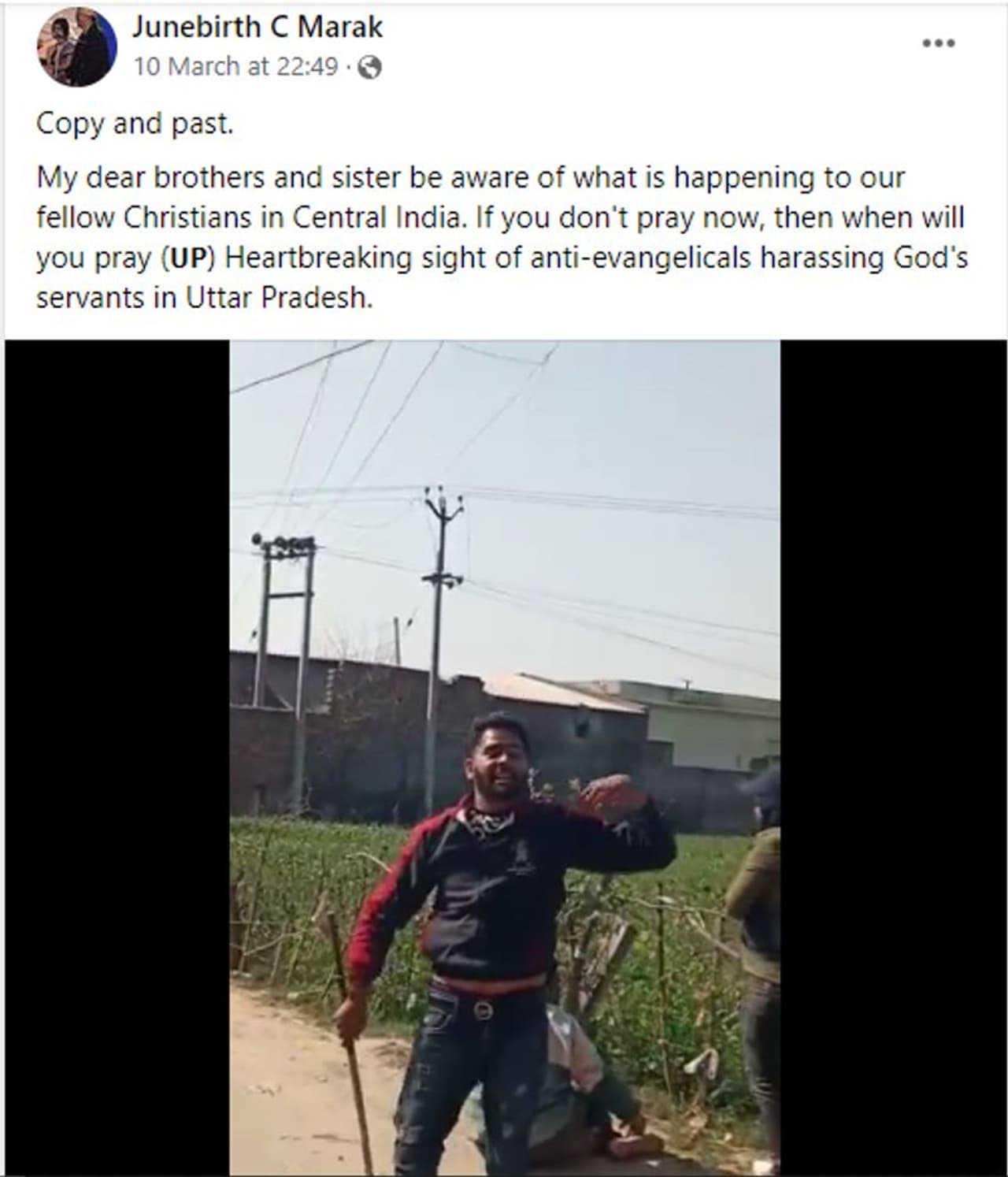 മധ്യ ഇന്ത്യയില് ക്രിസ്ത്യാനികള് നേരിടുന്ന അതിക്രമം എന്ന വിവരണത്തോടെയാണ് ദൃശ്യം ഫേസ്ബുക്കില് പോസ്റ്റ് ചെയ്തിരിക്കുന്നത്