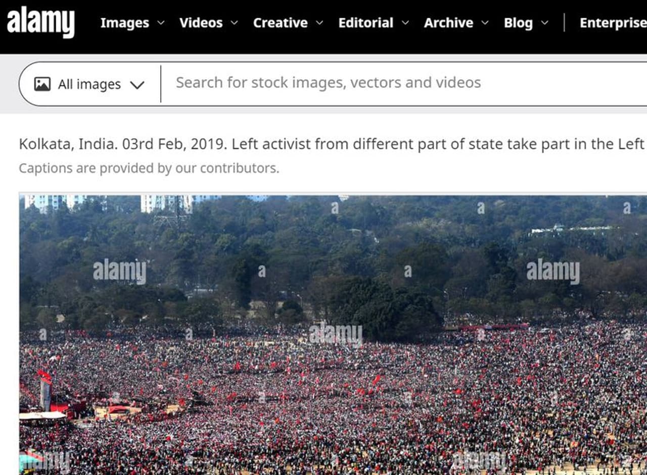 എന്നാല് രാംലീല മൈതാനിയിലെ ഇന്ത്യാ മുന്നണിയുടെ റാലിയുടെ ദൃശ്യം എന്ന പേരില് പ്രചരിക്കുന്ന ചിത്രം തെറ്റിദ്ധരിപ്പിക്കുന്നതാണ്. 2019 ഫെബ്രുവരിയില് അന്നത്തെ ലോക്സഭ തെരഞ്ഞെടുപ്പിന് തൊട്ടുമുമ്പ് പശ്ചിമ ബംഗാളില് നടന്ന പ്രതിപക്ഷ റാലിയുടെ ചിത്രമാണിത്. ഇപ്പോള് പ്രചരിക്കുന്ന ഫോട്ടോ റിവേഴ്സ് ഇമേജ് സെർച്ചിന് വിധേയമാക്കിയതിലൂടെയാണ് ഇക്കാര്യം ബോധ്യപ്പെട്ടത്. 2019 ഫെബ്രുവരി ആറിന് പീപ്പിള്സ് ഡെമോക്രസിയില് ഈ ചിത്രം പ്രസിദ്ധീകരിച്ചിരുന്നു.
