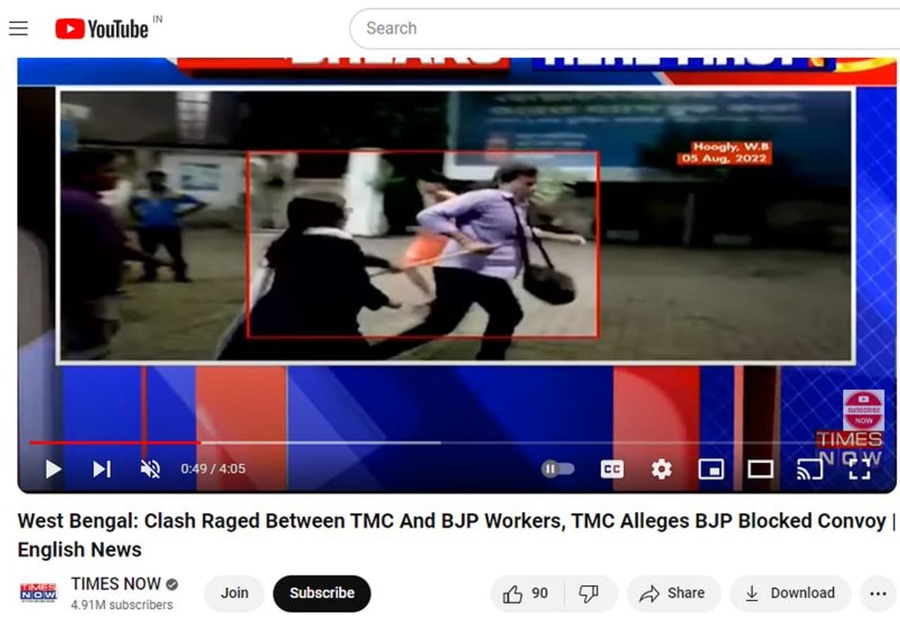 എന്നാല് ഈ വീഡിയോ നിലവിലെ ലോക്സഭ തെരഞ്ഞെടുപ്പുമായി ബന്ധപ്പെട്ടത് അല്ല എന്നതാണ് യാഥാര്ഥ്യം. 2022 ഓഗസ്റ്റില് പശ്ചിമ ബംഗാളിലെ ഹൂഗ്ലിയില് ബിജെപി- തൃണമൂല് കോണ്ഗ്രസ് അംഗങ്ങള് തമ്മിലുണ്ടായ സംഘര്ഷത്തിന്റെ ദൃശ്യങ്ങളാണിത്. ദേശീയ മാധ്യമമായ ടൈംസ് നൗ 2022 ഓഗസ്റ്റ് 6ന് യൂട്യൂബില് സംഘര്ഷത്തിന്റെ സമാന ദൃശ്യങ്ങള് സഹിതം വാര്ത്ത അപ്ലോഡ് ചെയ്തിട്ടുണ്ട്. മറ്റൊരു ദേശീയ മാധ്യമമായ എന്ഡിടിവി സംഘര്ഷത്തെ കുറിച്ച് വാര്ത്ത പ്രസിദ്ധീകരിക്കുകയും ചെയ്തിരുന്നു. അതിനാല് ഇപ്പോള് പ്രചരിക്കുന്ന വീഡിയോ പഴയതാണ് എന്ന് തെളിവുകള് സഹിതം ഉറപ്പിക്കാം. ഇതേ വീഡിയോ മുമ്പ് മറ്റ് ചില ആരോപണങ്ങളോടെയും പ്രചരിച്ചിരുന്നതാണ്.