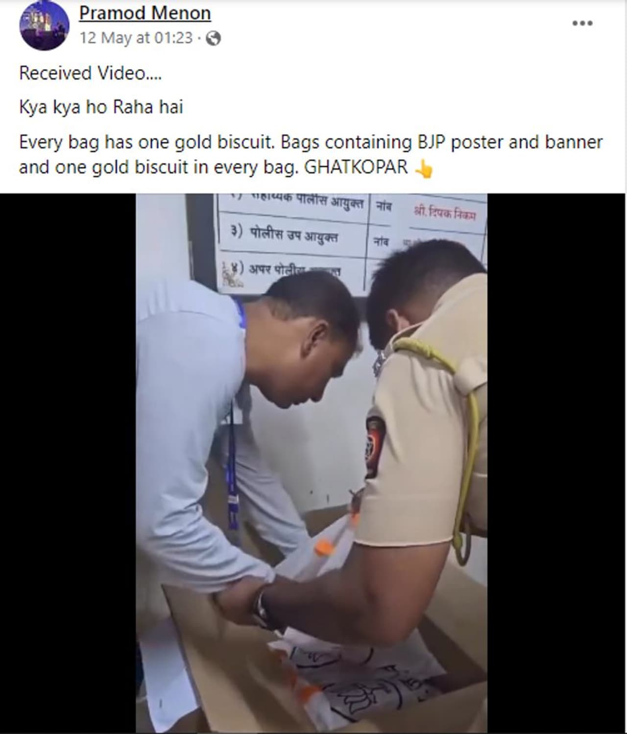 മുംബൈയില് ബിജെപി തെരഞ്ഞെടുപ്പ് കിറ്റിനൊപ്പം സ്വര്ണ ബിസ്കറ്റ് വിതരണം ചെയ്തതായുള്ള പ്രചാരണം തെറ്റാണ് എന്നാണ് മാധ്യമവാര്ത്തകളില് നിന്ന് മനസിലാകുന്നത്. അതേസമയം കിറ്റില് നിന്ന് സ്വര്ണ ബിസ്കറ്റ് പിടികൂടിയതായി വാര്ത്തകളൊന്നും ലഭ്യമല്ല.