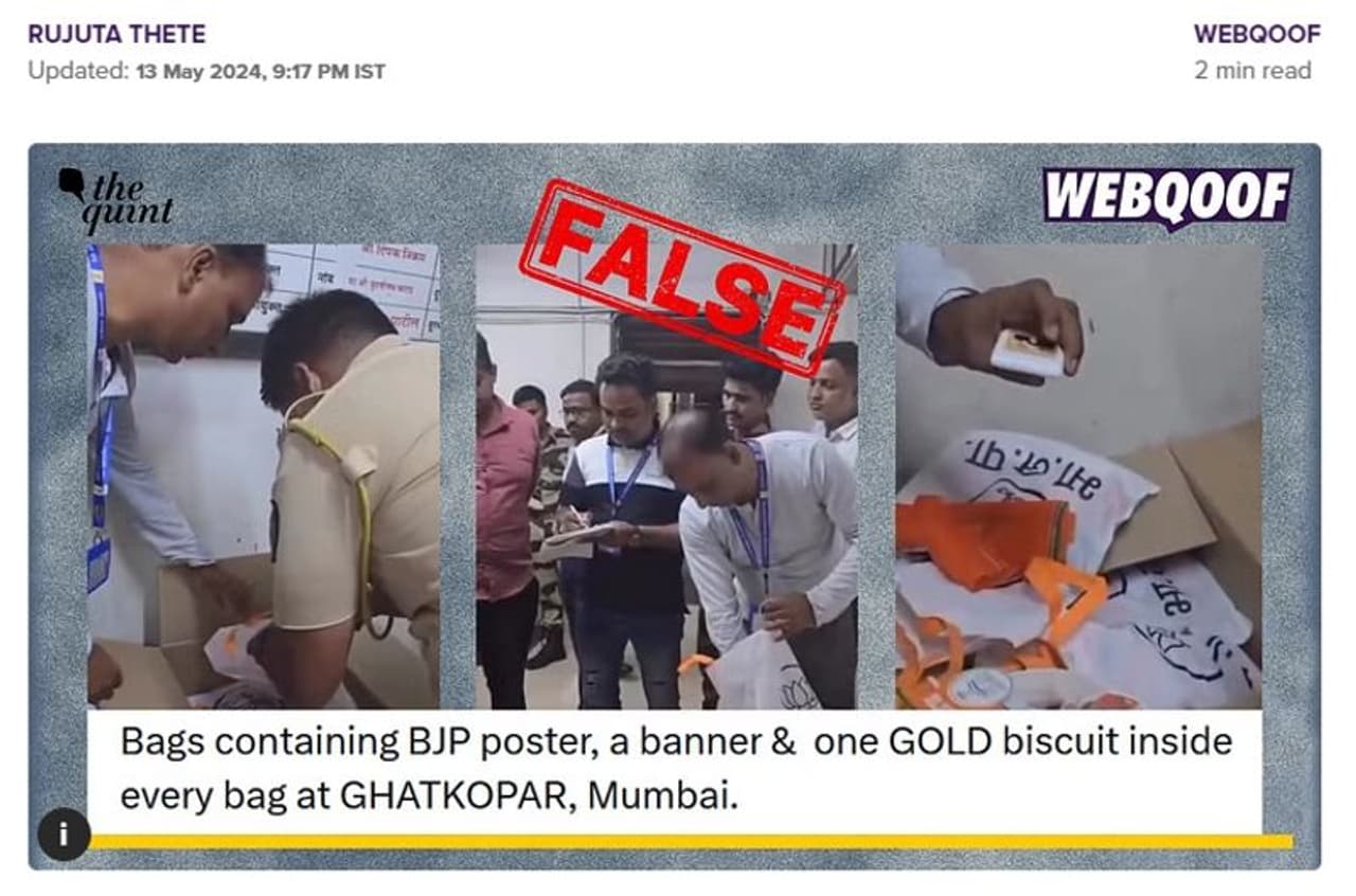 ലോക്സഭ തെരഞ്ഞെടുപ്പ് 2024ല് വ്യാജ പ്രചാരണങ്ങളുടെ കുത്തൊഴുക്കാണ്. തെറ്റായ അനവധി വീഡിയോകളും ചിത്രങ്ങളുമൊക്കെയാണ് സാമൂഹ്യമാധ്യമങ്ങളില് പ്രചരിക്കുന്നത്. ഇത്തരത്തിലൊരു പ്രചാരണമാണ് മഹാരാഷ്ട്രയിലെ മുംബൈയില് ബിജെപി സ്വര്ണ ബിസ്കറ്റുകള് വിതരണം ചെയ്യുന്നു എന്നുള്ളത്. ഇതിന്റെ വസ്തുത പരിശോധിക്കാം.
