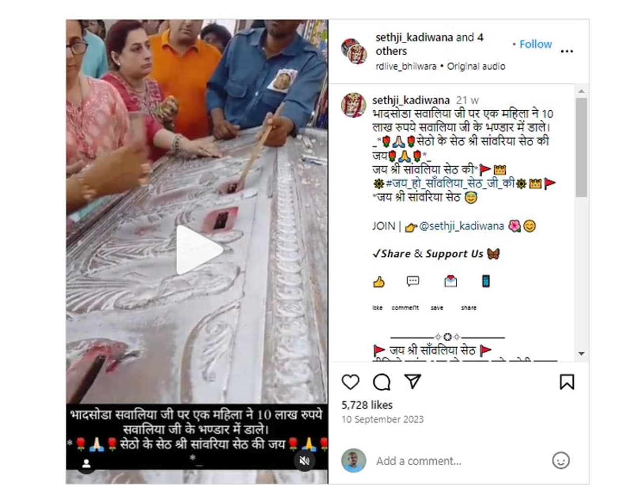പ്രചരിക്കുന്ന വീഡിയോ അപ്പോള് എവിടെ നിന്നുള്ളതാണ് എന്ന് കണ്ടെത്താനുള്ള ശ്രമമായി അടുത്തത്. വിവിധ മാധ്യമവാര്ത്തകള് പറയുന്നത് ഈ ദൃശ്യങ്ങള് രാജസ്ഥാനിലെ സാന്വാലിയ സേത് ക്ഷേത്രത്തില് നിന്നുള്ളതാണ് എന്നാണ്. എന്തായാലും അയോധ്യയില് നിന്നുള്ള വീഡിയോ അല്ല ഇപ്പോള് ഇന്സ്റ്റഗ്രാമില് വൈറലായിരിക്കുന്നത് എന്ന് വ്യക്തം.