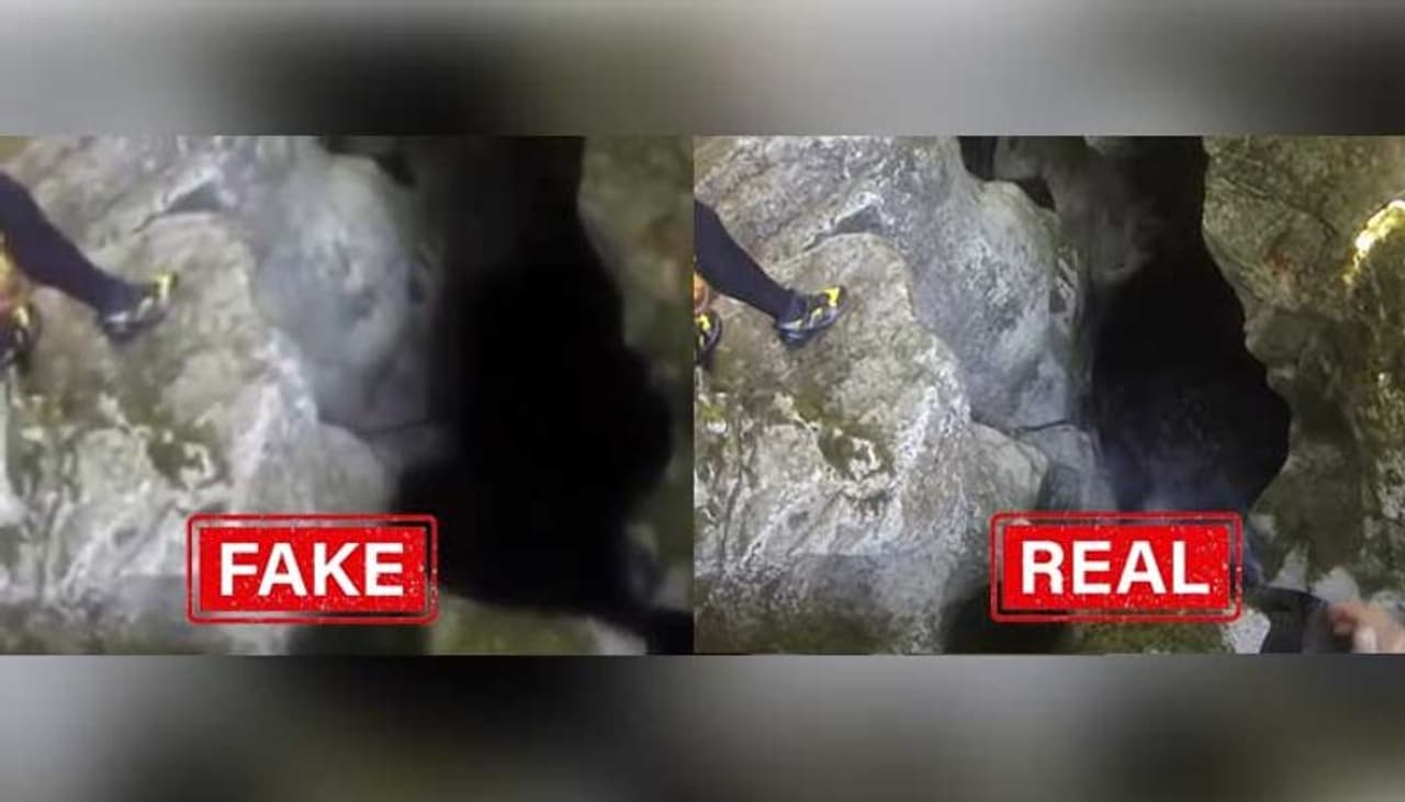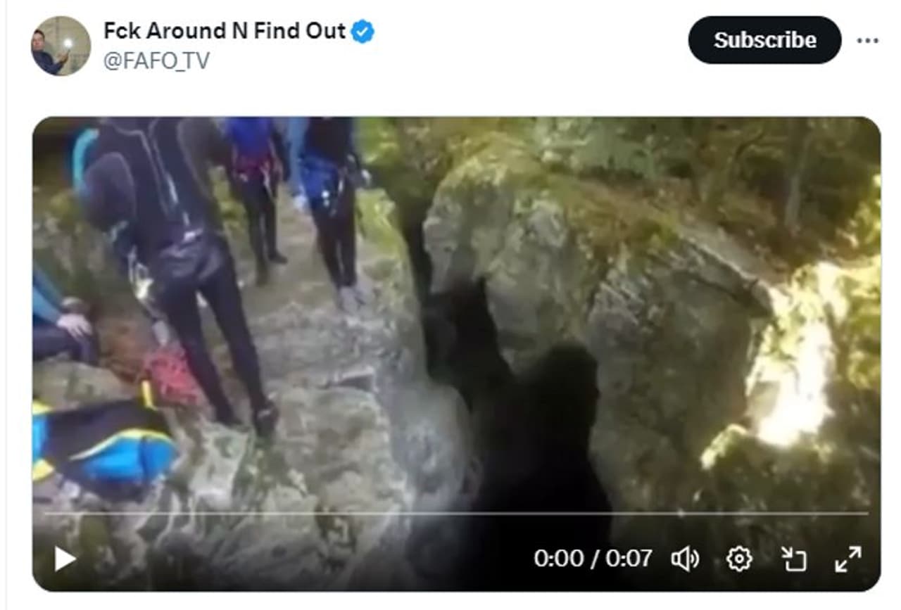 എക്സില് പോസ്റ്റ് ചെയ്തിരിക്കുന്ന വീഡിയോയില് ക്ലിഫിന്റെ താഴ്ഭാഗം അവ്യക്തമായിരുന്നു. എന്നാല് യൂട്യൂബില് കാണുന്ന വീഡിയോയില് കിടങ്ങിന്റെ താഴ്ഭാഗത്ത് ധാരാളം ജലമുള്ളതായി കാണാം. ഈ വെള്ളത്തിലേക്കാണ് ആള് കാല്വഴുതി വീണത്. ഇദേഹം കാല്തെറ്റി വീഴുന്നത് കണ്ടയുടനെ താഴെയുണ്ടായിരുന്ന ഒരു നീന്തല്കാരന് എത്തി ജലത്തില് നിന്ന് ഇയാളെ രക്ഷിക്കുന്നത് വീഡിയോയില് കാണാം. നിഗൂഢമായ ഏതോ കിടങ്ങിലേക്ക് അല്ല കാല്വഴി ആള് വീണത് എന്ന് ഇതിലൂടെ ഉറപ്പിക്കാം. ഈ ജലത്തിലേക്ക് തന്നെയാണ് ഇയാളും കൂടെയുള്ളവരും ചാടാന് തയ്യാറെടുത്തിരുന്നത്.