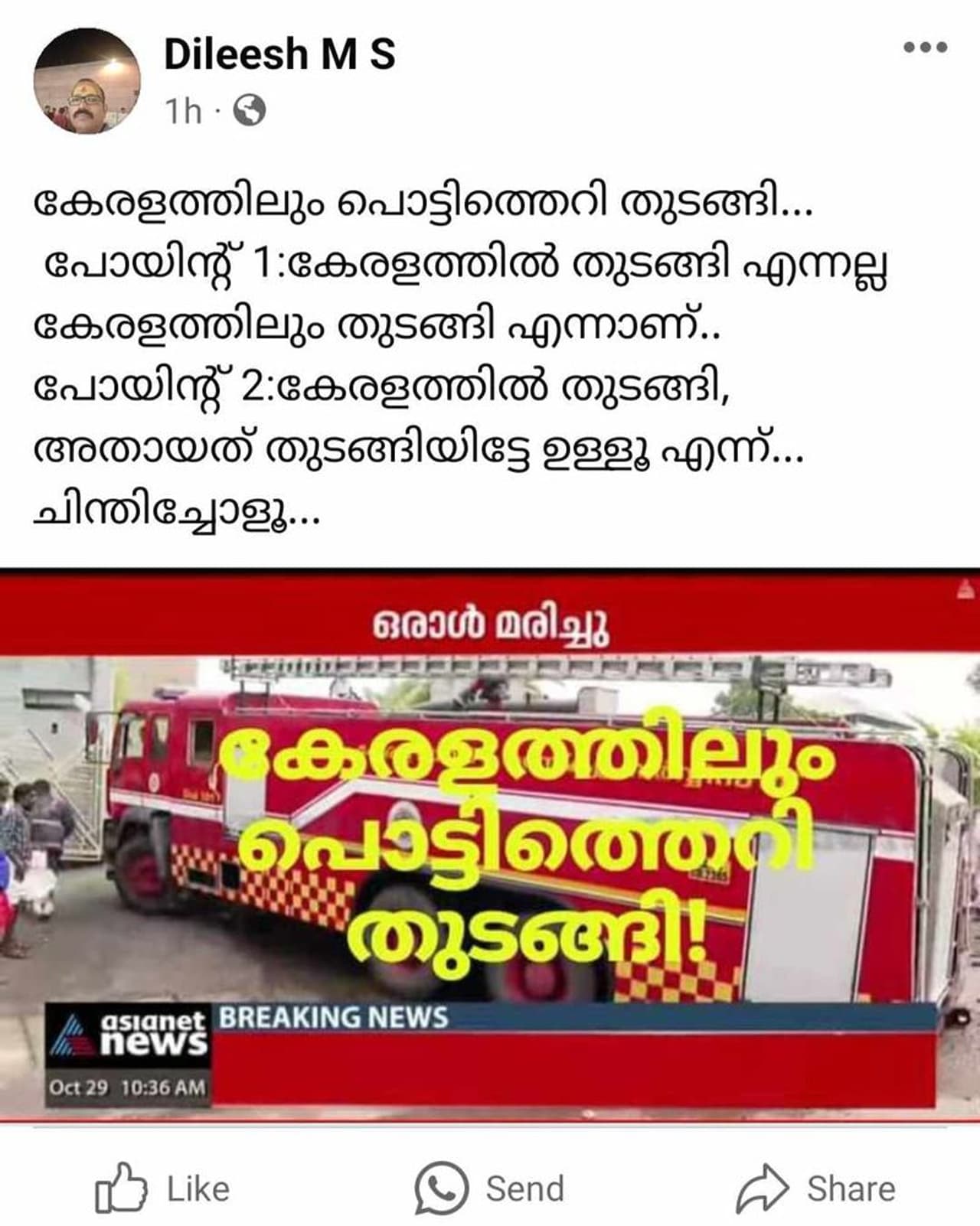 ദിലീഷ് എം എസിന്റെ ഫേസ്ബുക്ക് പോസ്റ്റിന്റെ സ്ക്രീൻഷോട്ട്
