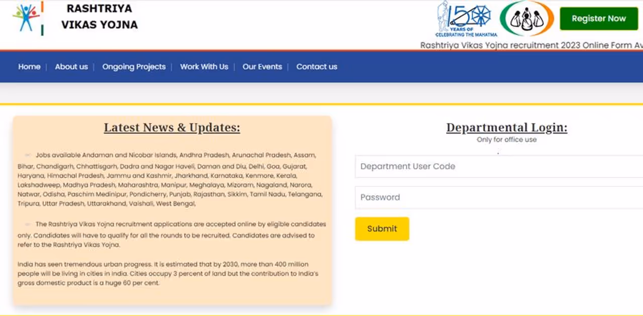 കേന്ദ്ര സര്ക്കാരിന് കീഴിലുള്ള കാര്ഷിക മന്ത്രാലയത്തിലെ വിവിധ ഡിപാര്ട്മെന്റുകളില് നിങ്ങള്ക്ക് ജോലിക്ക് അവസരം എന്നാണ് വെബ്സൈറ്റില് പറയുന്നത്. അപേക്ഷാ തുകയായി 1,675 രൂപ അടച്ചാല് മതിയെന്നാണ് https://rashtriyavikasyojna.org എന്ന വെബ്സൈറ്റില് നല്കിയിരിക്കുന്ന വിവരങ്ങളില് പറയുന്നത്. 'രാഷ്ട്രീയ വികാസ് യോജന നിരവധി ഒഴിവുകളിലേക്ക് ഓണ്ലൈനായി അപേക്ഷ ക്ഷണിച്ചിരിക്കുന്നു. കേരളം അടക്കമുള്ള വിവിധ സംസ്ഥാനങ്ങളിലെ ഒഴിവുകളിലേക്കുള്ള ഓണ്ലൈന് അപേക്ഷ ലഭ്യമാണ്' എന്നും വെബ്സൈറ്റില് കാണാം. ഡിപാര്ട്മെന്റിന്റെ യൂസര് കോഡും പാസ്വേഡും ഉപയോഗിച്ച് ജോലിക്ക് അപേക്ഷിക്കാനുള്ള വഴിയും വെബ്സൈറ്റില് കൊടുത്തിട്ടുണ്ട്.
