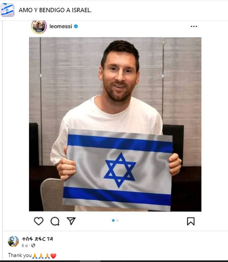 ലിയോണല് മെസി ഇസ്രയേലി പതാക കൈയില് പിടിച്ച് നില്ക്കുന്ന ചിത്രമാണ് സോഷ്യല് മീഡിയയില് വ്യാപകമായിരിക്കുന്നത്