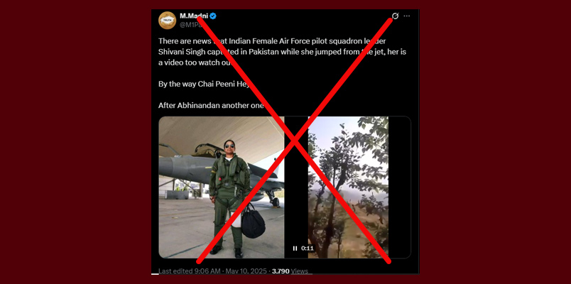 ഇന്ത്യന് വ്യോമസേനയിലെ വനിതാ പൈലറ്റായ ശിവാനി സിംഗിനെ പാകിസ്ഥാന് പിടികൂടിയെന്നാണ് ഒരു വീഡിയോ സഹിതം പാക് അനുകൂല എക്സ് ഹാന്ഡിലുകളുടെ അവകാശവാദം. ഈ വാദത്തോടെയുള്ള ഒരു ട്വീറ്റിന്റെ സ്ക്രീന്ഷോട്ട് ചുവടെ ചേര്ക്കുന്നു.