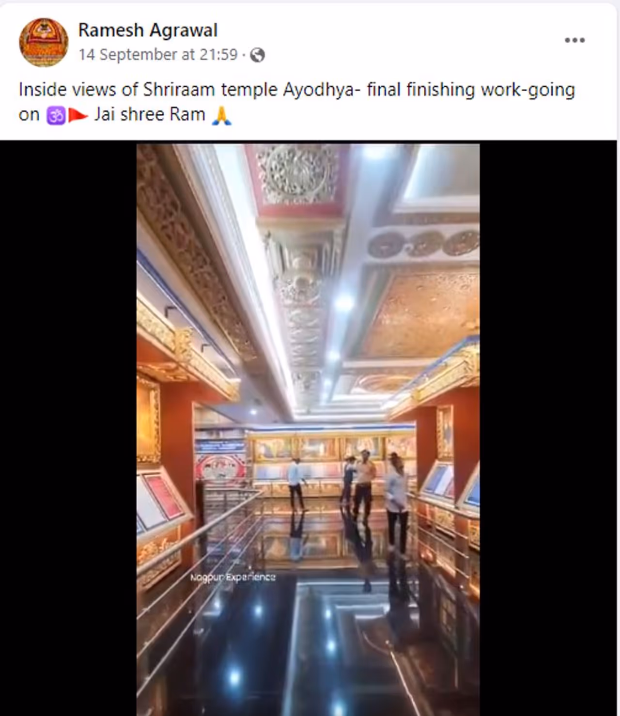 അതേസമയം വീഡിയോയില് കാണുന്നതുപോലെ അയോധ്യ ക്ഷേത്രം തുറന്നുകൊടുക്കാന് തയ്യാറായിട്ടില്ല എന്നാണ് റിപ്പോര്ട്ട്. ഡിസംബര് അവസാനത്തോടെ ആദ്യ ഘട്ടത്തിന്റെ പണി പൂര്ത്തിയായി ജനുവരി ആദ്യം ക്ഷേത്രം തുറന്നുകൊടുക്കും എന്നാണ് ഏറ്റവും പുതിയ റിപ്പോര്ട്ട്. ഗൂഗിളില് വിശദമായി കീവേഡ് സെര്ച്ച് ചെയ്തപ്പോള് കൂടുതല് വിവരങ്ങള് ലഭിച്ചു. കൊരഡിയിലുള്ള രാമായണ കള്ച്ചറല് സെന്ററില് നിന്നുള്ള ദൃശ്യമാണ് പ്രചരിക്കുന്നത് എന്ന് വ്യക്തമായി. പണി പുരോഗമിച്ച് കൊണ്ടിരിക്കുന്ന അയോധ്യ രാമക്ഷേത്രത്തിന്റെ അകത്തെ ദൃശ്യങ്ങള് എന്ന പ്രചാരണം തെറ്റാണ് എന്ന് ഇതില് നിന്ന് ഉറപ്പിക്കാം.