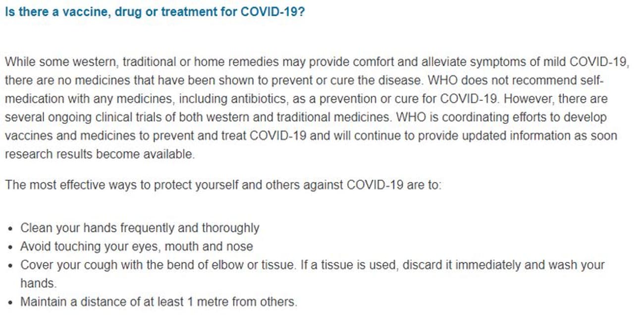 ഇഞ്ചിയും തേനും കൊറോണയ്ക്ക് മരുന്നാണ് എന്ന പ്രചാരണം ഏപ്രിലില് ലോകാരോഗ്യ സംഘടന തള്ളിക്കളഞ്ഞിരുന്നു. സാധാരണ പനിയോ ജലദോഷമോ വരുമ്പോള് പ്രയോഗിക്കുന്ന പാരമ്പര്യ പൊടിക്കൈകള് കൊറോണക്കാലത്ത് പ്രയോഗിക്കുന്നത് ശ്രദ്ധിക്കണമെന്ന മുന്നറിയിപ്പ് നല്കിയിരുന്നു അന്ന് ലോകാരോഗ്യ സംഘടന. കൊവിഡിന് ഫലപ്രദമായ വാക്സിനോ മരുന്നോ കണ്ടെത്താനായിട്ടില്ല എന്നാണ് ലോകാരോഗ്യ സംഘടന ഇപ്പോഴും വ്യക്തമാക്കുന്നത്.