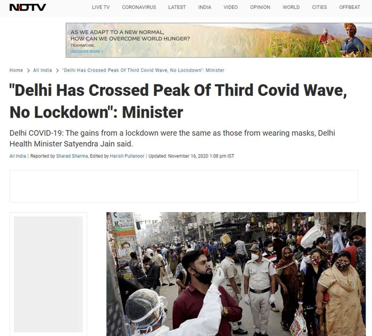 രാജ്യതലസ്ഥാനമായ ദില്ലി വീണ്ടും ലോക്ക്ഡൗണിലേക്ക് എന്ന പ്രചാരണങ്ങള് ഇപ്പോള് വിശ്വസിക്കാനാവില്ല. രോഗികളുടെ എണ്ണത്തില് കുറവില്ലെങ്കിലും ലോക്ക്ഡൗണ് സാധ്യത ദില്ലി ആരോഗ്യമന്ത്രി സത്യേന്ദ്ര ജെയ്ന് തള്ളിക്കളഞ്ഞതോടെയാണിത്.