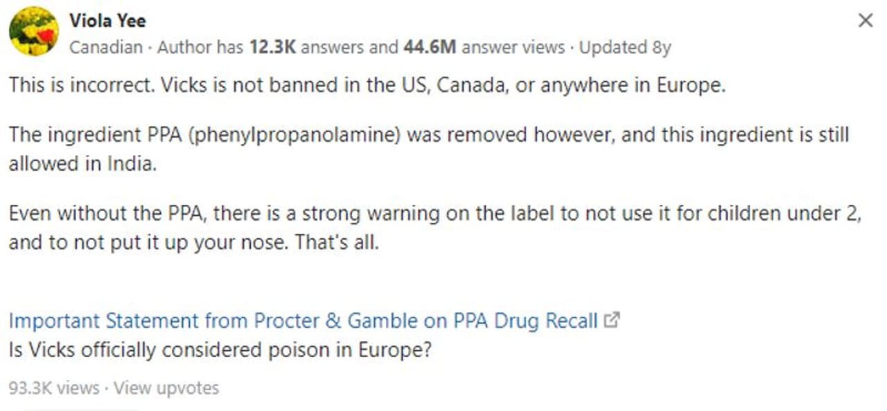 വിക്സ് ഒരു സ്ലോ പോയിസൺ ആണെന്നതും, വിദേശ രാജ്യങ്ങളിൽ അത് നിരോധിച്ചിരിക്കുന്നു എന്നതും