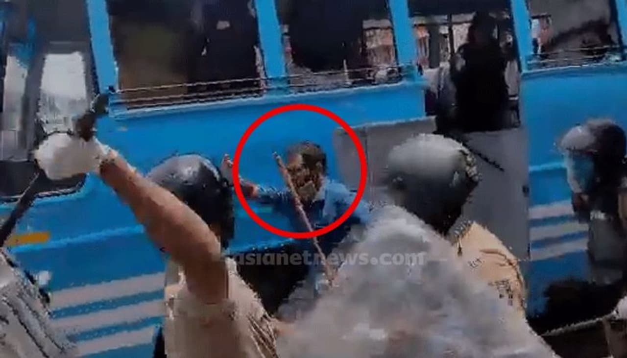 മാസ്ക് വെക്കാത്തവരെ പൊലീസ് തല്ലിച്ചതയ്ക്കുന്നതല്ല ദൃശ്യത്തിലുള്ളത് എന്നതാണ് സത്യം. സ്വര്ണ്ണക്കടത്ത് വിവാദത്തില് മുഖ്യമന്ത്രി പിണറായി വിജയന്റെ രാജി ആവശ്യപ്പെട്ട് യൂത്ത് കോണ്ഗ്രസ് പ്രവര്ത്തകര് നടത്തിയ മാര്ച്ചിനെ പൊലീസ് നേരിടുന്നതാണ് ദൃശ്യത്തില്. പൊലീസ് വിരട്ടിയോടിക്കുന്നവരില് പലരുടെയും മുഖത്ത് മാസ്കും കൈകളില് ഗ്ലൗസുമുണ്ട് എന്നതും വസ്തുത വെളിവാക്കുന്നു. നിര്ത്തിയിട്ടിരിക്കുന്ന ബസിനോട് ചേര്ന്ന് പൊലീസിന്റെ മര്ദനമേല്ക്കുന്നയാള് മാസ്ക് ധരിച്ചിട്ടുണ്ട് എന്നും വ്യക്തമാണ്.