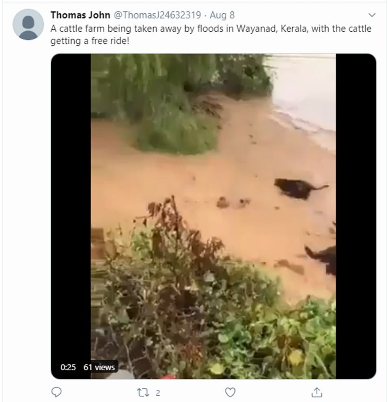 രാജമലയിലെ ദുരന്തത്തിന്റേത് എന്ന പേരില് പ്രചരിക്കുന്ന ഒരു വീഡിയോ ഇങ്ങനെ. കനത്ത മഴവെള്ളപ്പാച്ചിലില് നിരവധി പശുക്കള് ഒഴുകിപ്പോകുന്നതാണ് ദൃശ്യത്തില്. രാജമല ദുരന്ത വാര്ത്ത പുറത്തറിഞ്ഞതിന് പിന്നാലെയാണ് വാട്സ്ആപ്പ് അടക്കമുള്ള സാമൂഹ്യമാധ്യമങ്ങളില് വീഡിയോ വ്യാപകമായി പ്രചരിച്ചത്. വയനാട്ടില് നിന്നുള്ളതാണ് ഈ വീഡിയോ എന്നും പ്രചാരണമുണ്ട്.