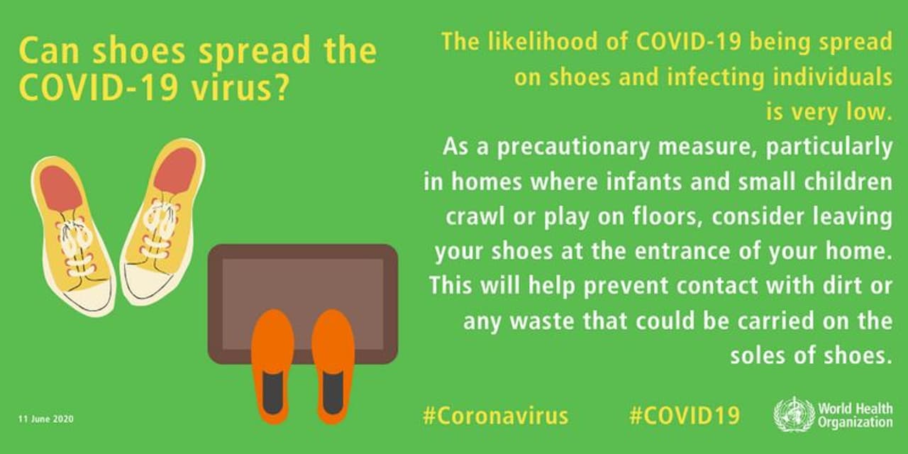 പുറത്തുപോകുമ്പോള് ധരിക്കുന്ന ഷൂ വീടിനുള്ളിലും ധരിച്ചതാണ് കൊവിഡ് ഇറ്റലിയില് പടര്ന്നുപിടിക്കാന് കാരണം എന്ന് നേരത്തെ പ്രചാരണമുണ്ടായിരുന്നു. സമാന പ്രചാരണം വീണ്ടും സജീവമായിരിക്കുമ്പോള് മറുപടി നല്കുകയാണ് ലോകാരോഗ്യ സംഘടന.