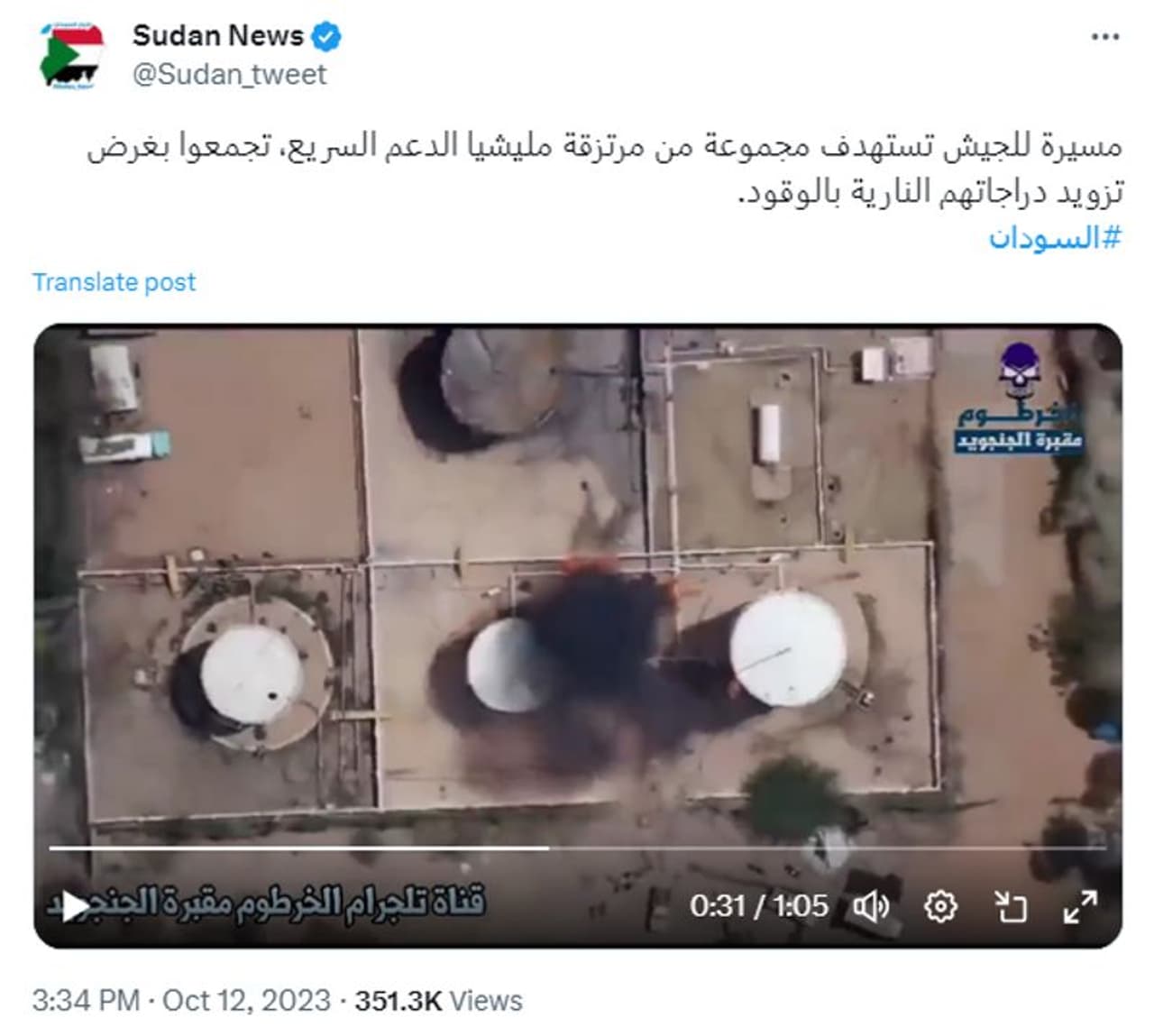 ഗാസയിലെ ഇസ്രയേല് ക്രൂരത എന്ന തലക്കെട്ടുകളില് പ്രചരിക്കുന്ന ഈ വീഡിയോയ്ക്ക് നിലവിലെ സംഘര്ഷവുമായി യാതൊരു ബന്ധവുമില്ല എന്നതാണ് യാഥാര്ഥ്യം. ആഫ്രിക്കന് രാജ്യമായ സുഡാനില് നിന്നുള്ള വീഡിയോയാണ് ഗാസയിലെ ഇസ്രയേല് ആക്രമണം എന്ന തലക്കെട്ടുകളില് സാമൂഹ്യമാധ്യമങ്ങളില് പ്രചരിക്കുന്നത്. ഈ വീഡിയോ 2023 ഒക്ടോബര് 12ന് സുഡാന് ന്യൂസ് ഔദ്യോഗിക ട്വിറ്ററ് ഹാന്ഡിലില് നിന്ന് ട്വീറ്റ് ചെയ്തിരിക്കുന്നത് കാണാം. റാപിഡ് സപ്പോര്ട്ട് ഫോഴ്സിനെതിരെ സുഡാന് ആര്മി നടത്തിയ ആക്രമണമാണിത് എന്നാണ് വിവിധ റിപ്പോര്ട്ടുകളില് പറയുന്നത്. ബൈക്കുകളില് ഇന്ധനം നിറയ്ക്കുമ്പോഴായിരുന്നു ആക്രമണം എന്നും വാര്ത്തകളില് പറയുന്നു.