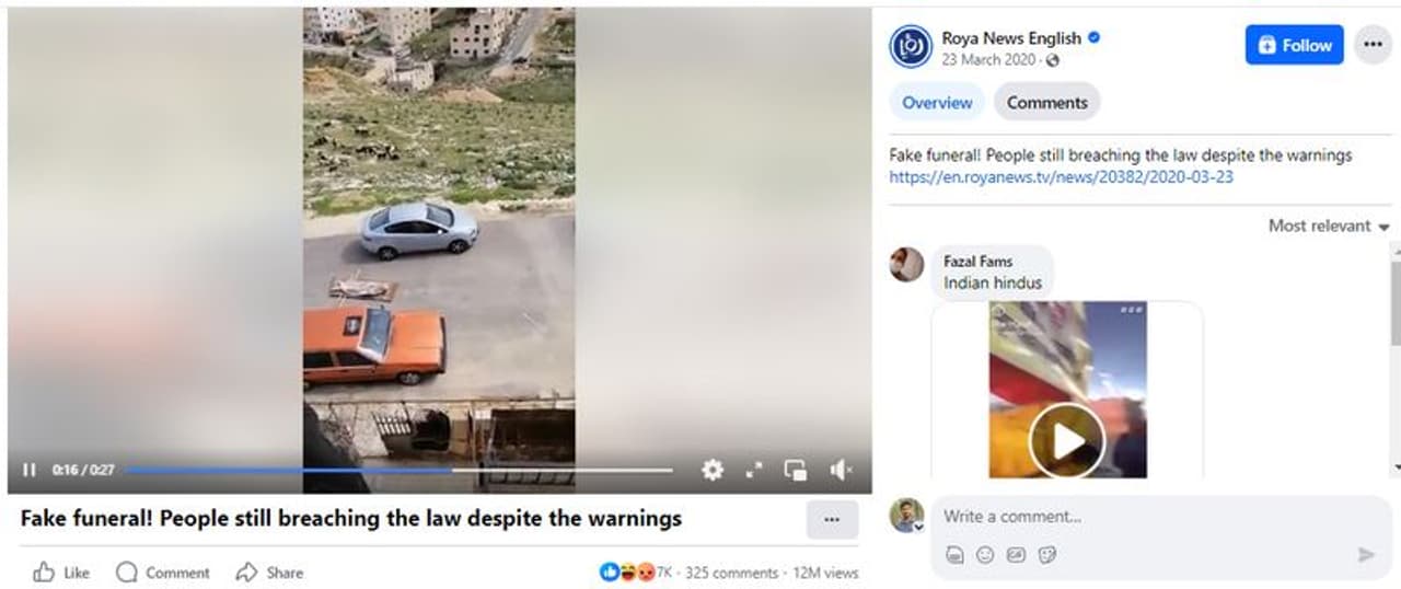 ഇസ്രയേല് നടത്തുന്ന വ്യോമാക്രമണങ്ങളില് ജീവന് നഷ്ടമായെന്ന് പലസ്തീനികള് നാടകം കളിക്കുകയാണ് എന്ന് ആരോപിക്കുന്ന വീഡിയോയ്ക്ക് നിലവിലെ ഇസ്രയേല്- ഹമാസ് സംഘര്ഷങ്ങളുമായി ബന്ധമൊന്നുമില്ല എന്ന് വ്യക്തമായിരിക്കുകയാണ്. ഇപ്പോള് പ്രചരിക്കുന്ന വീഡിയോ 2020ല കൊവിഡ് ലോക്ക്ഡൗണ് കാലത്തെ ജോര്ദാനില് നിന്നുള്ളതാണ്. കൊവിഡ് ലോക്ക്ഡൗണ് ലംഘിച്ച് വീടിന് പുറത്തുകടക്കാന് ജോര്ദാനിലെ ഒരുപറ്റം യുവാക്കള് വ്യാജ ശവസംസ്കാര ഘോഷയാത്ര സംഘടിപ്പിക്കുകയായിരുന്നു എന്നാണ് അന്ന് വിവിധ മാധ്യമങ്ങള് റിപ്പോര്ട്ട് ചെയ്തത്. ജോര്ദാനില് നിന്നുള്ള 2020ലെ വീഡിയോയാണിത് എന്ന് കാണിക്കുന്ന വിവിധ മാധ്യമ റിപ്പോര്ട്ടുകള് വായിക്കാം, ലിങ്ക് 1, ലിങ്ക് 2.