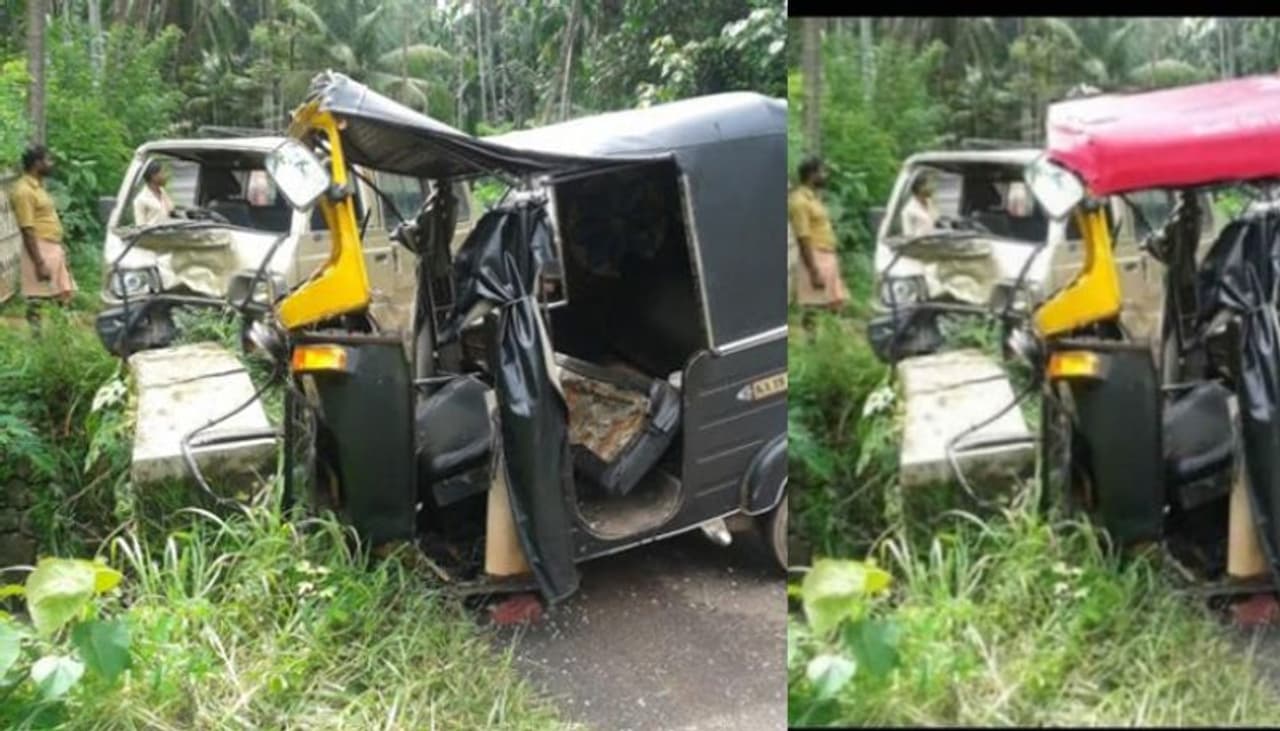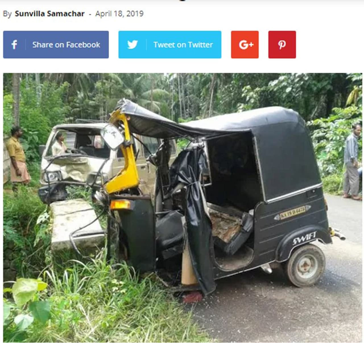 അപകടത്തില്പ്പെട്ട ഓട്ടോയും ഒമ്നിയും, സമീപത്തുള്ള മൂന്ന് ആളുകള് ഇവയെല്ലാം ഇരു ചിത്രങ്ങളും ഒന്നാണ് എന്ന് തെളിയിക്കുന്നു.