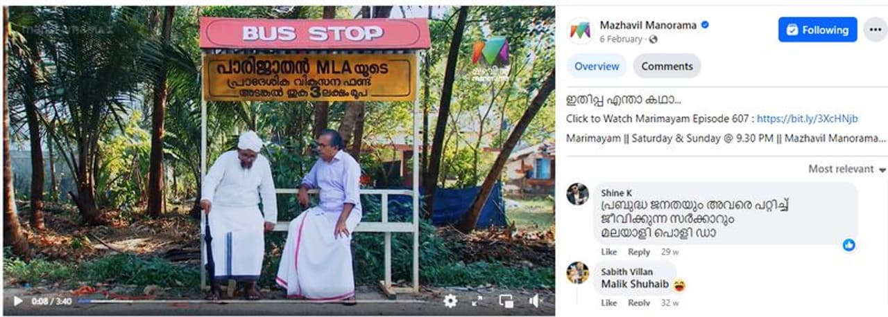 എന്നാല് വൈറല് ഫേസ്ബുക്ക് പോസ്റ്റുകളില് പറയുന്നത് പോലെയല്ല ഈ ബസ് കാത്തിരിപ്പ് കേന്ദ്രത്തിന്റെ വസ്തുത എന്നാണ് ഏഷ്യാനെറ്റ് ന്യൂസ് ഓണ്ലൈനിന്റെ ഫാക്ട് ചെക്കില് തെളിഞ്ഞത്. കെ.ടി. ജലീല് എംഎല്എ ഇത്തരമൊരു ബസ് കാത്തിരിപ്പ് കേന്ദ്രം നിര്മ്മിച്ചിട്ടില്ല എന്നതാണ് വസ്തുത. കെ.ടി. ജലീല് നിര്മ്മിച്ച ബസ് വെയിറ്റിംഗ് ഷെഡ് എന്ന് പറയുന്ന ചിത്രത്തിന്റെ ഉറവിടം എവിടെയാണ് എന്ന് വിശദമായി പരിശോധിച്ചപ്പോള് വ്യക്തമായത് ഈ ബസ് കാത്തിരിപ്പ് കേന്ദ്രം ഒരു ടെലിവിഷന് പരിപാടിയിലെ സെറ്റാണ് എന്നാണ്. മഴവില് മനോരമയിലെ മറിമായം എന്ന പരിപാടിയില് കാണിക്കുന്ന ബസ് വെയിറ്റിംഗ് ഷെഡാണിത്. ഫെബ്രുവരി ആറിന് മഴവില് മനോരമ ഫേസ്ബുക്കില് പോസ്റ്റ് ചെയ്തിരിക്കുന്ന വീഡിയോയില് ഈ വെയിറ്റിംഗ് ഷെഡ് കാണാം. എഫ്ബി പോസ്റ്റുകളിലെയും മറിമായത്തിലേയും ഷെഡുകള് ഒന്നുതന്നെയെന്ന് ചുവടെയുള്ള ചിത്രത്തില് നിന്ന് മനസിലാക്കാം.