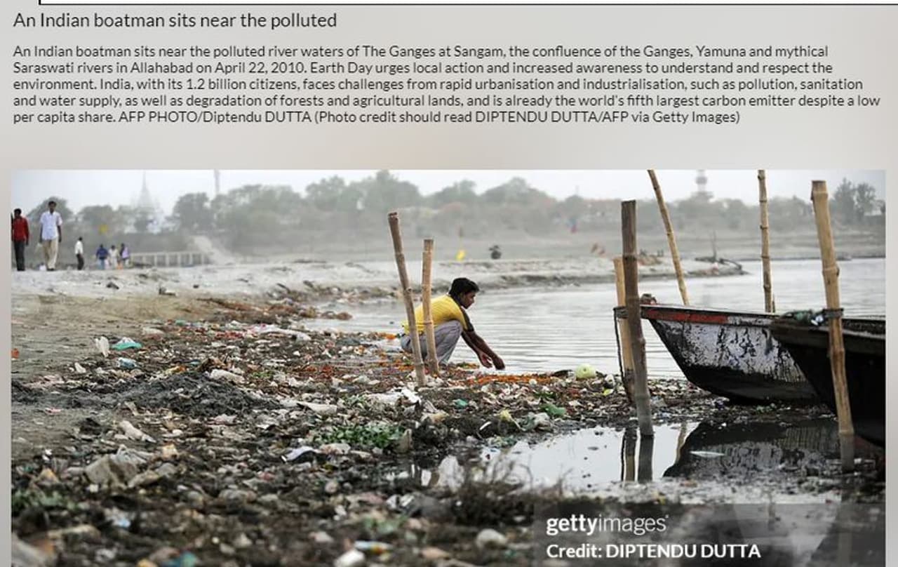 ഈ ചിത്രം ഫോട്ടോ ഏജന്സിയായ ഗെറ്റി ഇമേജസ് പകര്ത്തിയതാണ് എന്ന് വാര്ത്തയില് നാഷണല് ജിയോഗ്രഫിക് നല്കിയിട്ടുള്ളതിനാല് ഗെറ്റിയുടെ വെബ്സൈറ്റ് പരിശോധിക്കുകയും ചെയ്തു. ഗംഗാനദിയുടെ കരകളില് നിന്നുള്ള ചിത്രമാണിത് എന്ന് ഗെറ്റി ഇമേജസ് ചിത്രത്തോടൊപ്പം നല്കിയിട്ടുള്ള വിവരണത്തില് കാണാം. 2010 ഏപ്രില് 22ന് പകര്ത്തിയ ചിത്രം എന്നാണ് ഗെറ്റിയുടെ വിവരണത്തില് പറയുന്നത്. ഗംഗയിലെ മലിനജലത്തിനരികെ ഇരിക്കുന്ന ബോട്ടുകാരന്റെ ചിത്രമാണിത് എന്നാണ് ഗെറ്റി ഇമേജസ് അവകാശപ്പെടുന്നത്.