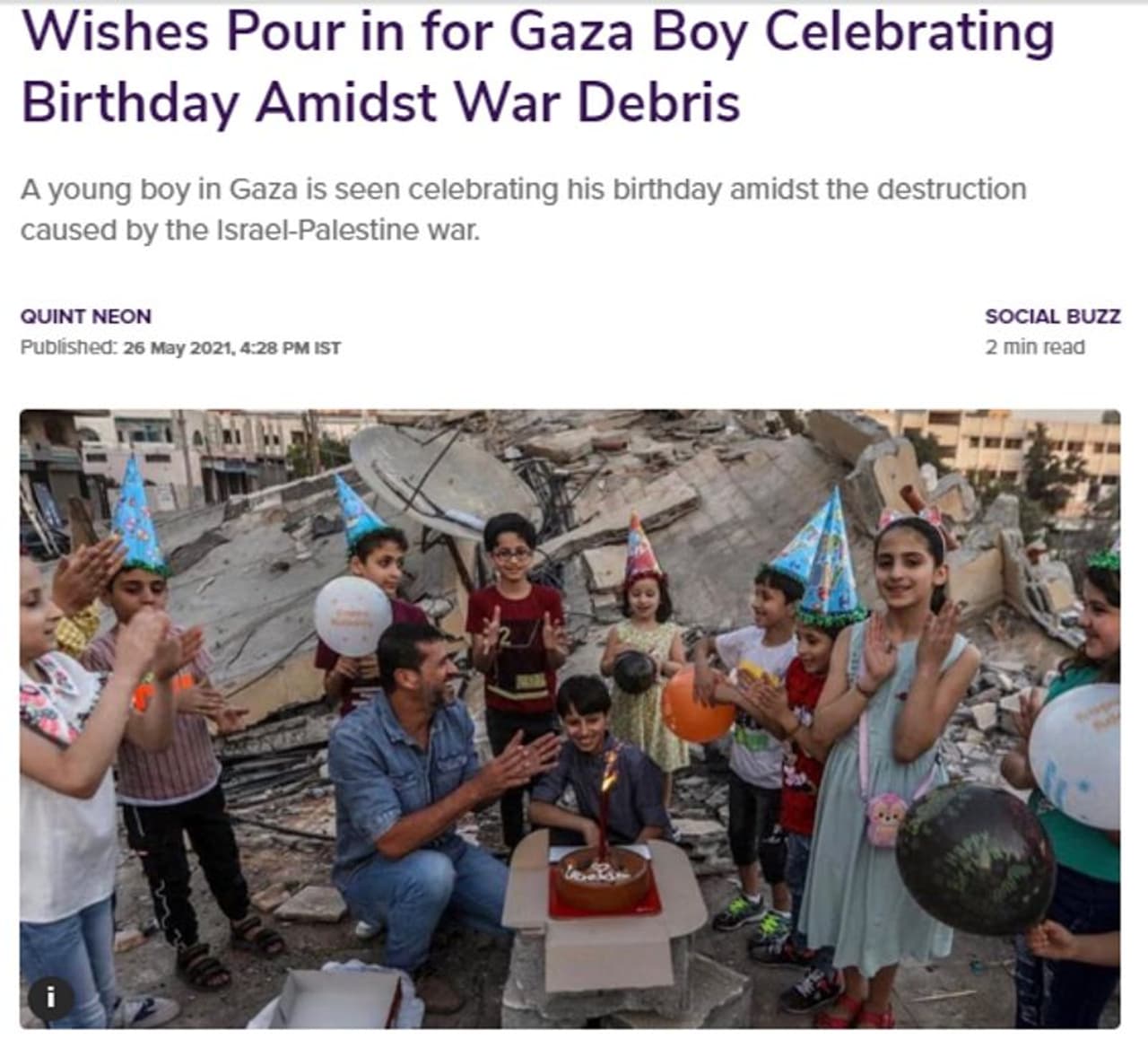 ഇസ്രയേല്-ഹമാസ് സംഘര്ഷം ഗാസയെ കുരുതിക്കളമാക്കിയിരിക്കുകയാണ്. ഇരു കൂട്ടരും തമ്മിലുള്ള സംഘര്ഷങ്ങളില് ഗാസയില് അനവധി കുട്ടികള് മരിച്ചതായാണ് റിപ്പോര്ട്ടുകള്. കൊല്ലപ്പെട്ടവരും ഗുരുതരമായി പരിക്കേറ്റവരുമായ നൂറുകണക്കിന് പലസ്തീനിയന് കുട്ടികളുടെ ചിത്രമാണ് ഇതിനകം പുറത്തുവന്നത്. ആ കണ്ണീര് ചിത്രങ്ങള്ക്കിടയില് നേരിയ ആശ്വാസം പകരുന്ന ചില ചിത്രങ്ങളും വാര്ത്തകളുമുണ്ടായിരുന്നു. ഇതിലൊന്ന് ഗാസയിലെ കുട്ടികള് ചേര്ന്ന് കേക്ക് മുറിച്ച് ഒരു ബാലന്റെ പിറന്നാള് ആഘോഷിക്കുന്നതായിരുന്നു. എന്നാല് ഈ ചിത്രത്തിന്റെ വസ്തുത നിലവിലെ സംഘര്ഷങ്ങളില് ആര്ക്കും ആശ്വാസമേകുന്നതല്ല. ചിത്രത്തിന്റെ യാഥാര്ഥ്യം നോക്കാം.
